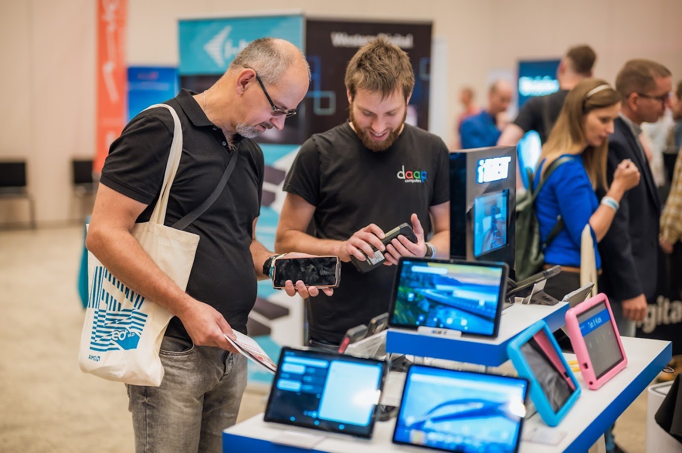 Centrem dění byl hlavní sál s výstavními stánky. Návštěvníci si produkty nejen prohlédli, ale i vyzkoušeli. Mezi vystavovateli byly značky APC, Aruba, Brother, Epson, Fujitsu, iGET, Lenovo, LG, Samsung, Tesla Smart a další.