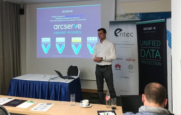 Po přivítání Davida Takače, obchodního ředitele Entec Solutions, Milan Mottl z Arcserve představil partnerům obchodní potenciál nejen zavedených technologií UDP pro zálohování a vysokou dostupnost, ale také novinek v portfoliu zabývajících se emailovou archivací a přímou zálohou do cloudu prostřednictvím služeb Backup as a Service a Disaster Recovery as a Service.