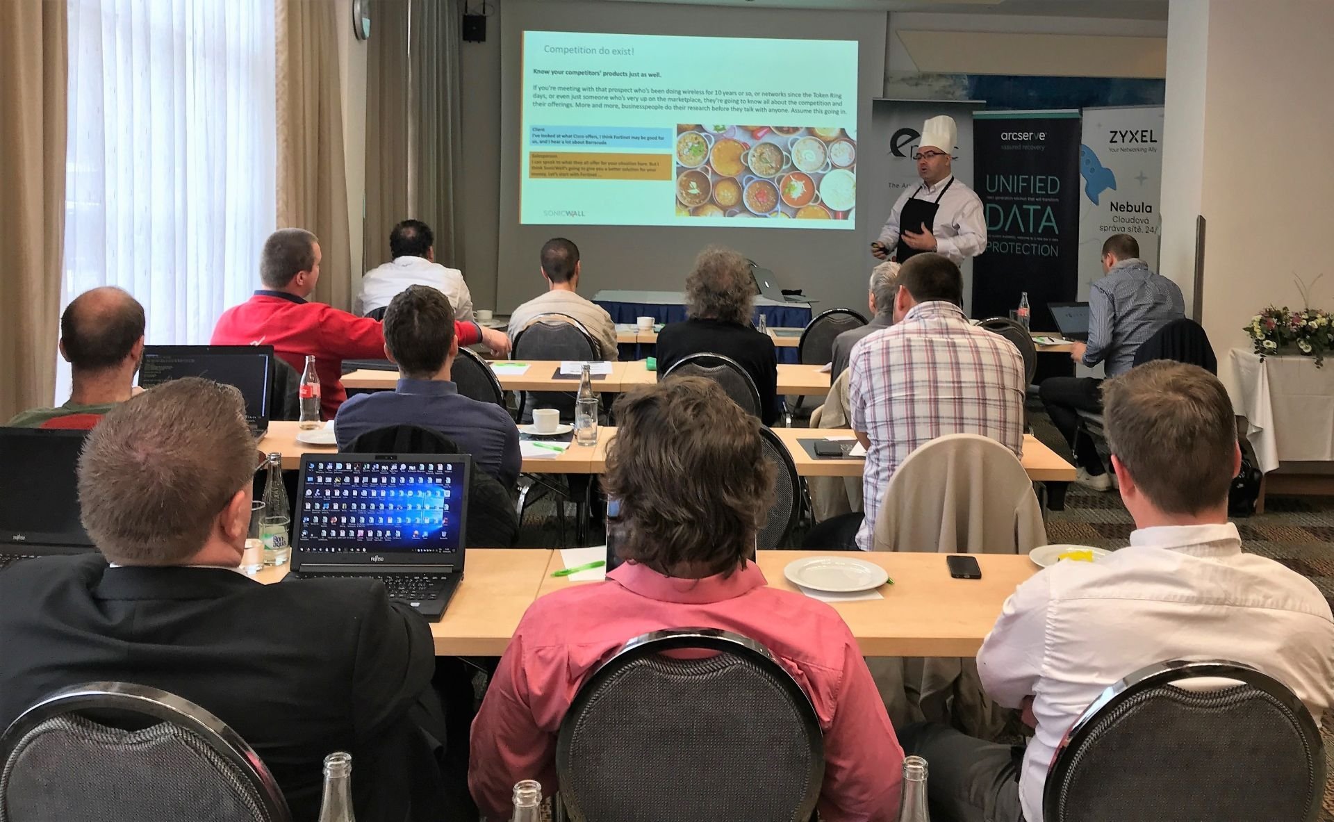 Na závěr Cosmin Vilcu uspořádal kuchařskou show a během kurzu vaření se SonicWall a Entec předal recepty na úspěch.