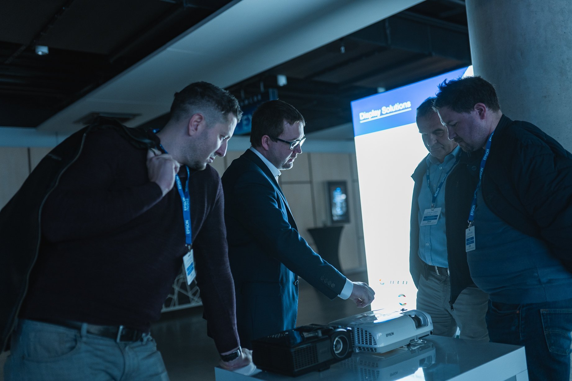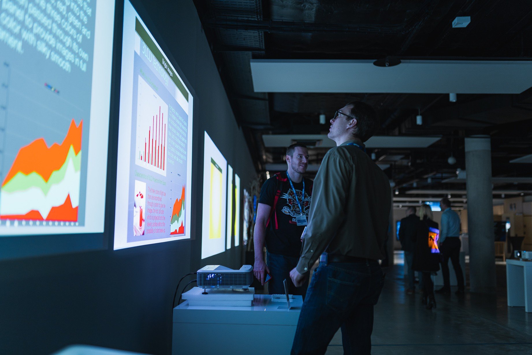Kromě tiskových řešení bylo na Epson Days k vidění množství projektorů. Z klasických business projektorů byl představen projektor LightScene EV-100, který umožňuje vytvářet atraktivní obraz s rozlišením WXGA a jasem 2 000 lumenů. Díky elegantnímu bílému designu lze projektor použít na místech jako výlohy a vitríny, kde by klasický projektor příliš vyčníval. Z business kategorie zde dále byl například projektor EB-1485fi s dotykovým ovládáním a s projekční plochou až 155 palců, které lze dosáhnout s použitím funkce Epson DuoLink kombinací dvou interaktivních projektorů pomocí vestavěné technologie Edge Blending. Díky možnosti promítání až čtyř zdrojů na jedné ploše je možné přispět k optimalizaci interakce v jednacích místnostech. Další neméně zajímavý projektor s označením EB-700U nabízí velké možností využití. Dokáže vytvořit jasný, škálovatelný obraz o velikosti až 130 palců a nabízí 20 000 hodin spolehlivého výkonu, a je proto vhodný pro obchody, galerie, muzea nebo také kanceláře.