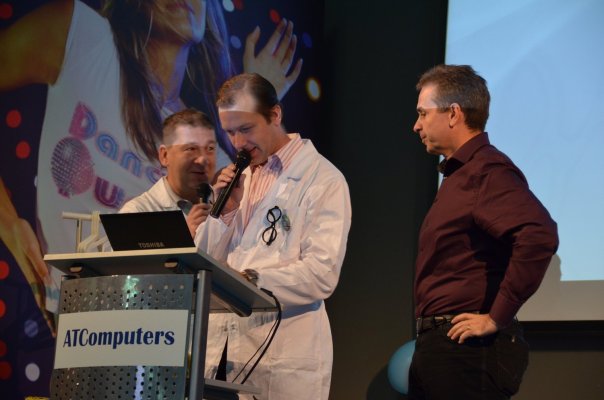 V duchu školní tématiky se nese celé školení. Zážitek je potkat Martina Wankeho v dlouhém plášti a v ruce držíc ukazovátko či v tělocvikářském. Pokud se tedy chystáte vrátit do školních lavic s AT Computers, máte se na co těšit. Hostesky jsou ve slušivých úborech, školní rozhlas po celou dobu akce hraje jednu hudební pecku za druhou a nechybí ani zajímavé, ke školnímu tématu trefné soutěže.