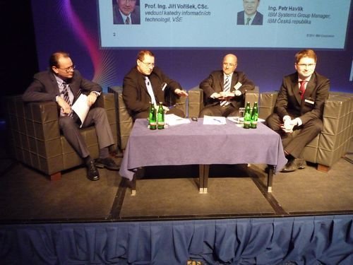 Následovala panelová diskuze za účasti Petra Havlíka (IBM), Miroslava Hübnera (PRE), Jiřího Voříška (VŠE) a Oldřicha Příklenka (Gartner). V odpolední části byl program rozdělen do sekcí snížení nákladů pomocí IT infrastruktury, cloud computing, datová centra, technologie a middleware a analýza a práce s daty.