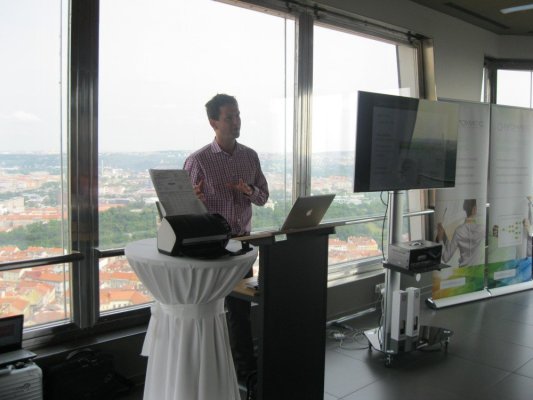 Seminář zahájil Tomáš Dolejš, ředitel společnosti Infomatic, který následně předal slovo Wilhelmu Gassnerovi, obchodními řediteli divize PFU Europe. Wilhelm během své prezentace rozdělené do dvou částí nejprve představil divizi, která se vývojem dokumentových skenerů zabývá, pohovořil o problematice a aspektech elektronické správy dokumentů .