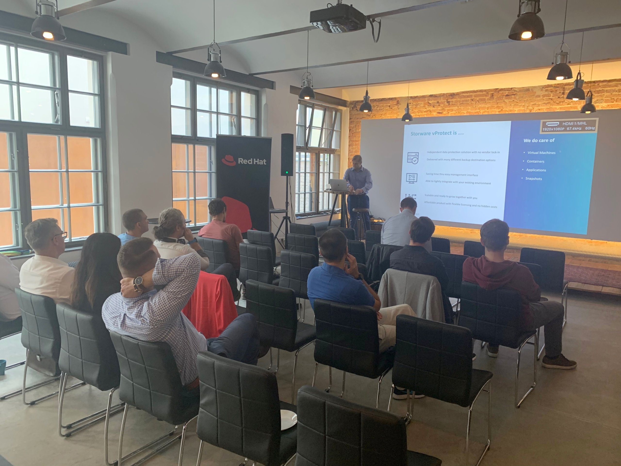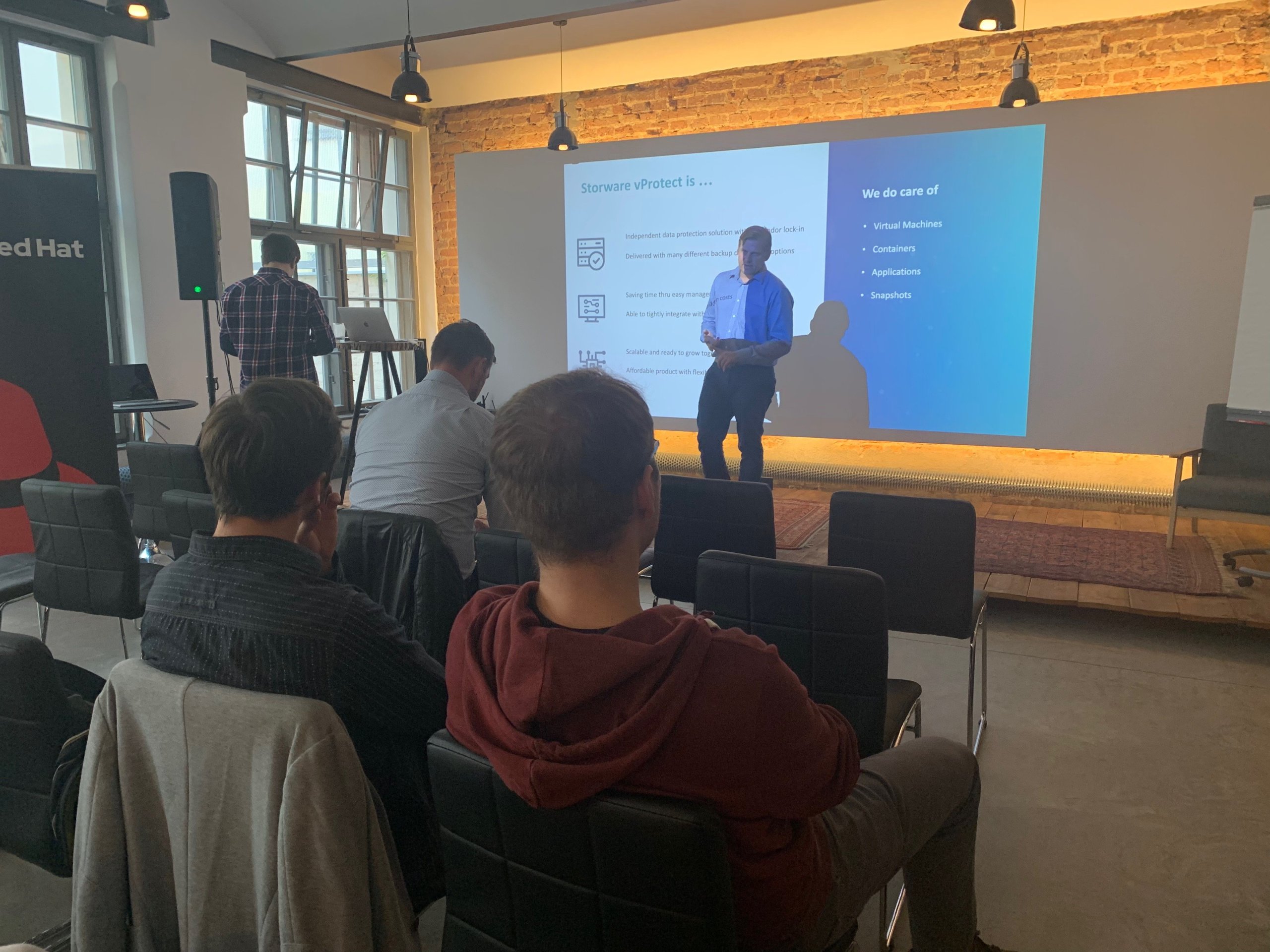 Před plátnem pak Goncharova vystřídal Radek Langkramer z Veracompu, který představil možnosti integrace RHEL s již zmíněným Storware – s řešením na zálohování a ochranu nejen virtualizovaných dat Storware vProtect. Ve Veracompu se o oba výrobce stará Red Hat team – integrátoři tak budou mít tu nejlepší možnou odbornou podporu.