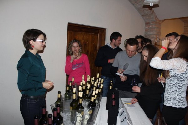 Neformální večerní program probíhal v prostorách vinného sklepa hotelu, kde místní sommeliér představil několik vzorků vína a hosté se měli možnost zapojit do slepé degustace. K posezení hrála cimbálová muzika Mládí z Čejče.