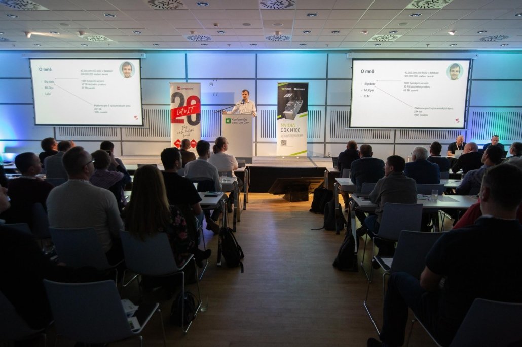 Po pauze na oběd vystoupili Josef Vopička a Martin Čmejrek (oba z Mama AI), kteří se ve své prezentaci zaměřili na praktické příklady využití aplikací generativní AI v oblasti efektivních konverzací nad daty a špičkových syntetických hlasů. O použití NVIDIA stacku pro inteligentní video analýzu následně prezentoval Milan Pultar z firmy Quantasoft a navázal David Herman z DataFromSky o AI v monitorování dopravy.