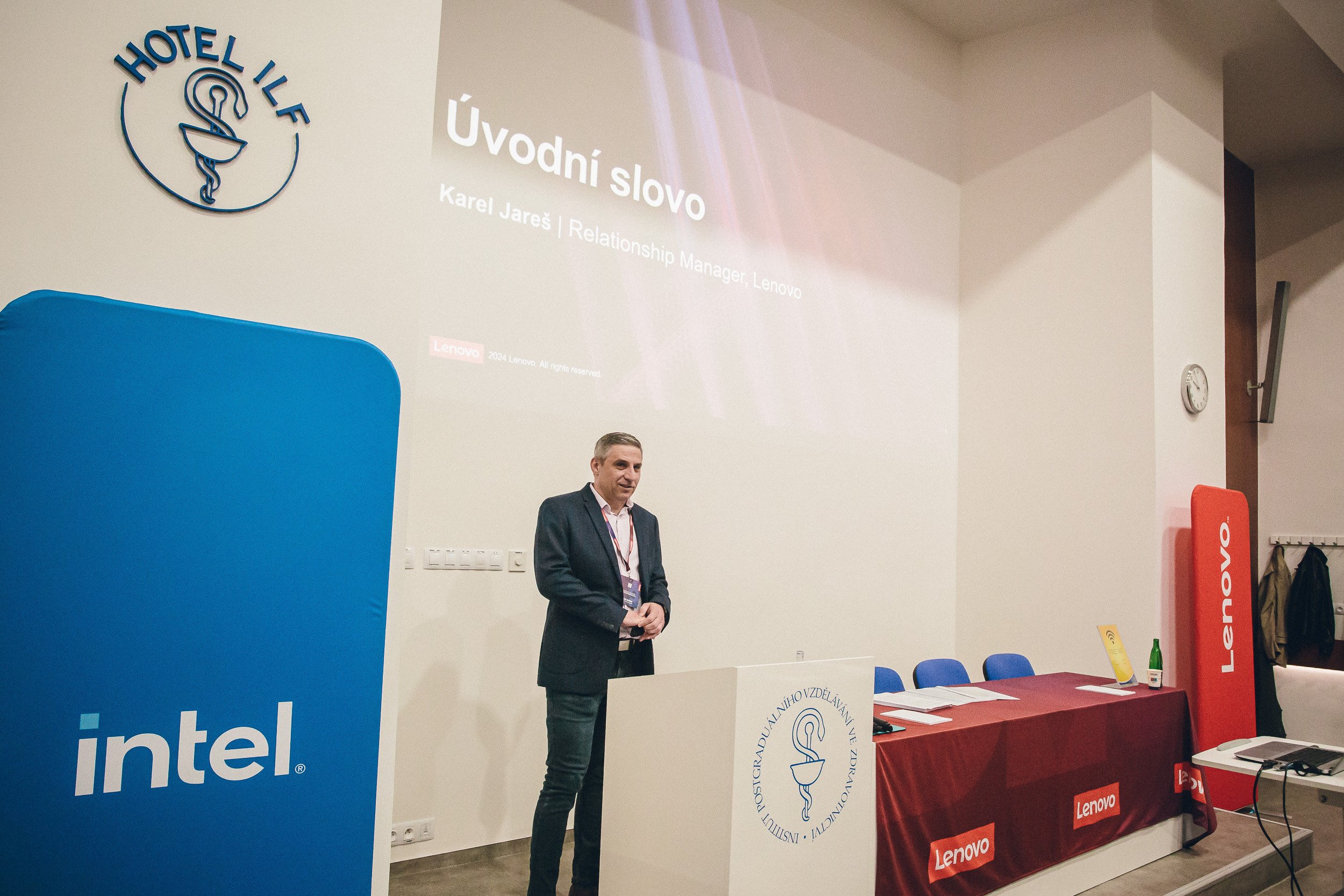 „Moc děkujeme, že jste si našli čas na dnešní konferenci a pevně věříme, že vás témata zaujmou a budou pro vás přínosná. V Lenovu si letošní rok spojujeme se třemi hlavními výzvami – pokračujícím nástupem umělé inteligence, finišováním přechodu podniků na Windows 11 a novou legislativou spojenou s NIS2, kvůli které jsme se dnes sešli,“ uvítal účastníky Karel Jareš.