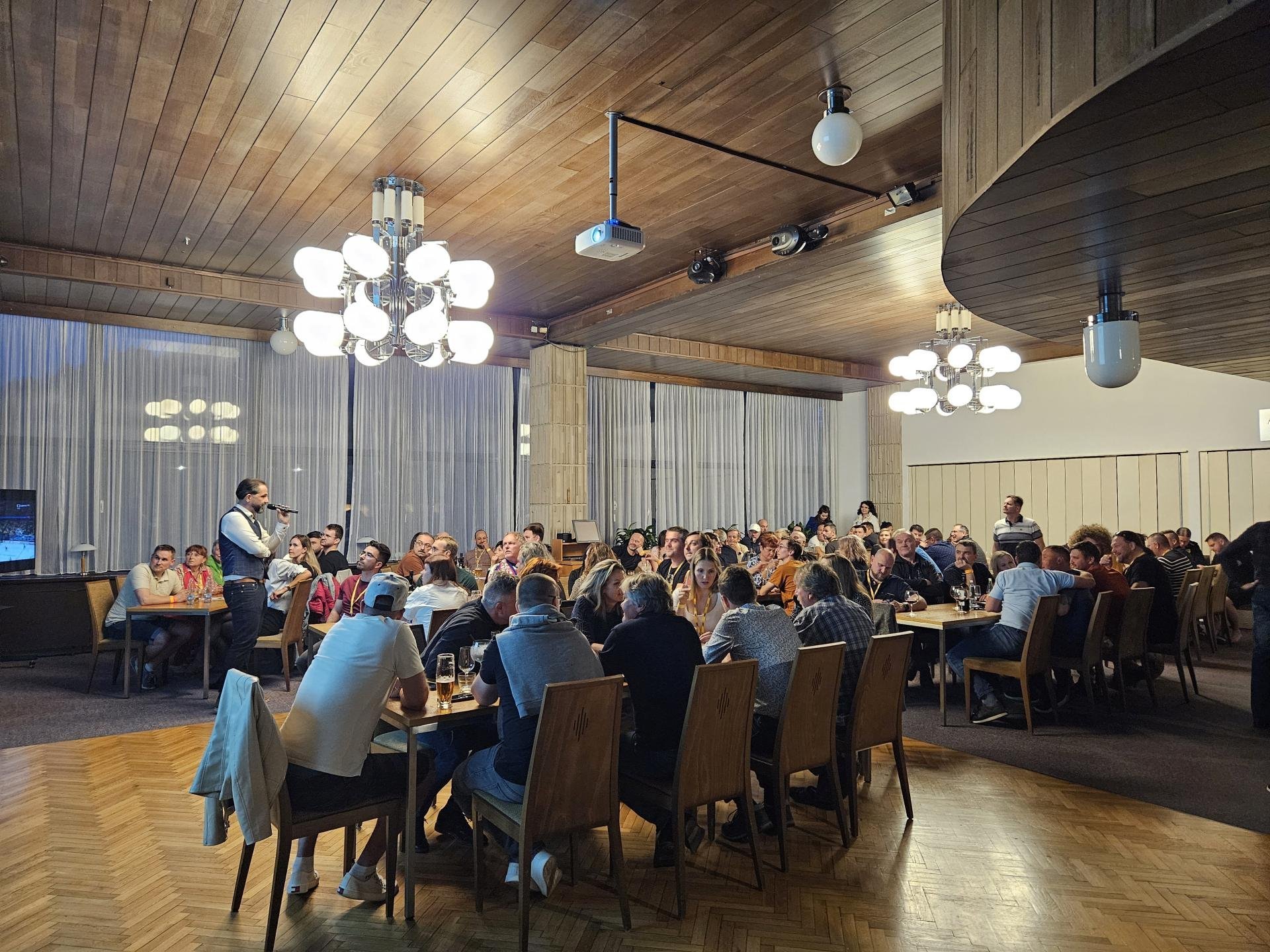 Večerní část programu patřila zábavě. Hokejový šampionát sice výsledkově nepotěšil, ale hospodský kvíz v režii Jakuba Kvášovského pobavil všechny. Nechyběl lehký adrenalin díky oblíbené stálici večera v Krkonoších – Casina Acer. Celým programem provázel moderátor Ondřej Carda, který udělal z akce nezapomenutelný zážitek.