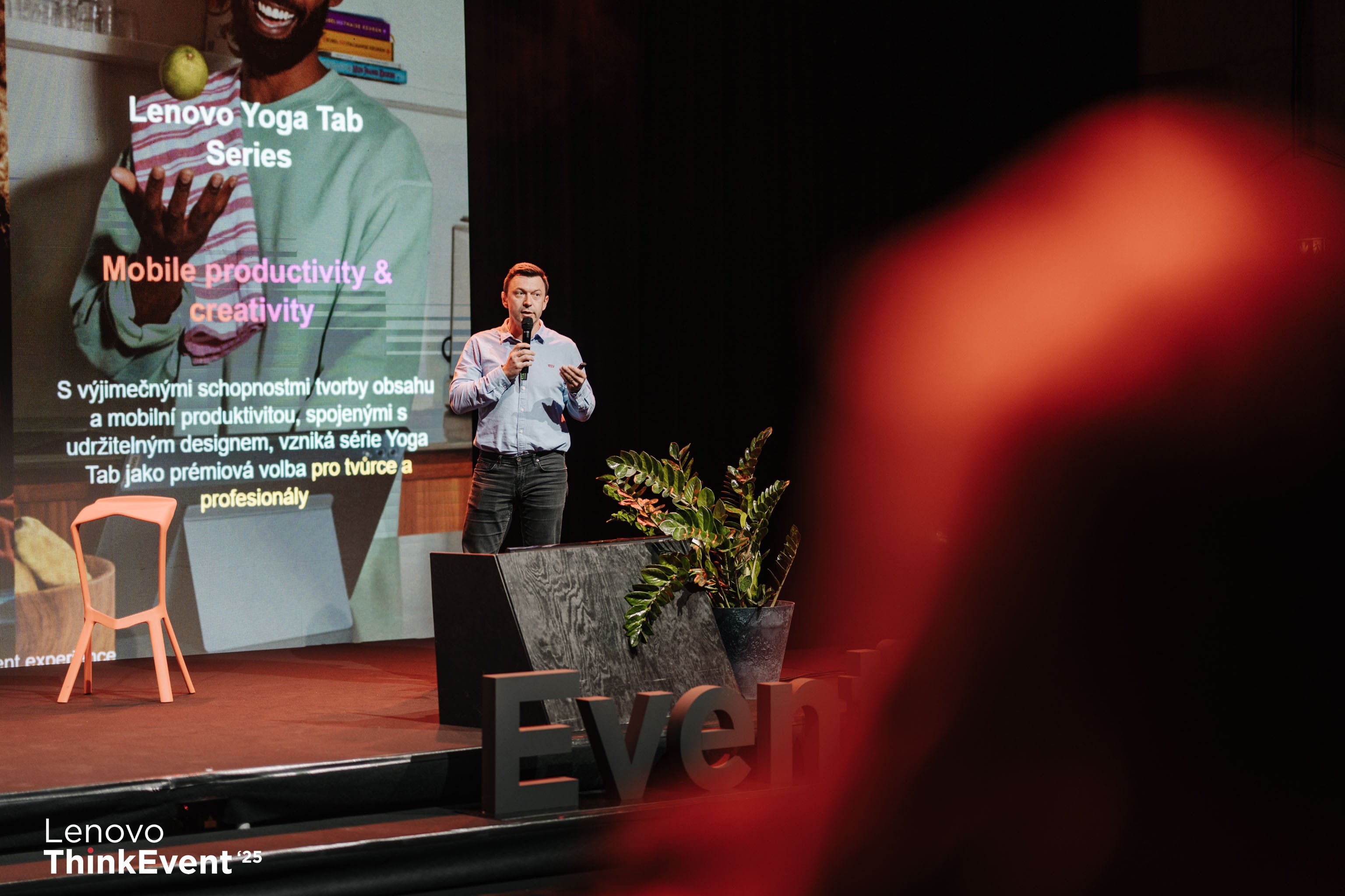 Úvodního slova konference se ujal generální ředitel společnosti Lenovo pro Českou republiku a Slovensko Petr Kheil, kterého na pódium stylově uvedl jeho digitální avatar vygenerovaný pomocí AI. „Dnes budeme mluvit o tom, jak technologie v čele s umělou inteligencí mění svět a jak vám v tomto ohledu může Lenovo pomoci. Naše vize Smarter AI for All je nedílnou součástí DNA všech našich produktů a služeb a jejím cílem je pomoci vám být lepší, výkonnější a efektivnější. Rád bych také připomněl, že Lenovo v letošním roce slaví 20 let působení na českém trhu. Od roku 2005 jsme urazili dlouhou cestu a nic z toho by se nestalo bez vás – spolehlivých partnerů a spokojených zákazníků. Za to bych vám chtěl jménem celé společnosti Lenovo poděkovat,“ uvedl Petr Kheil.