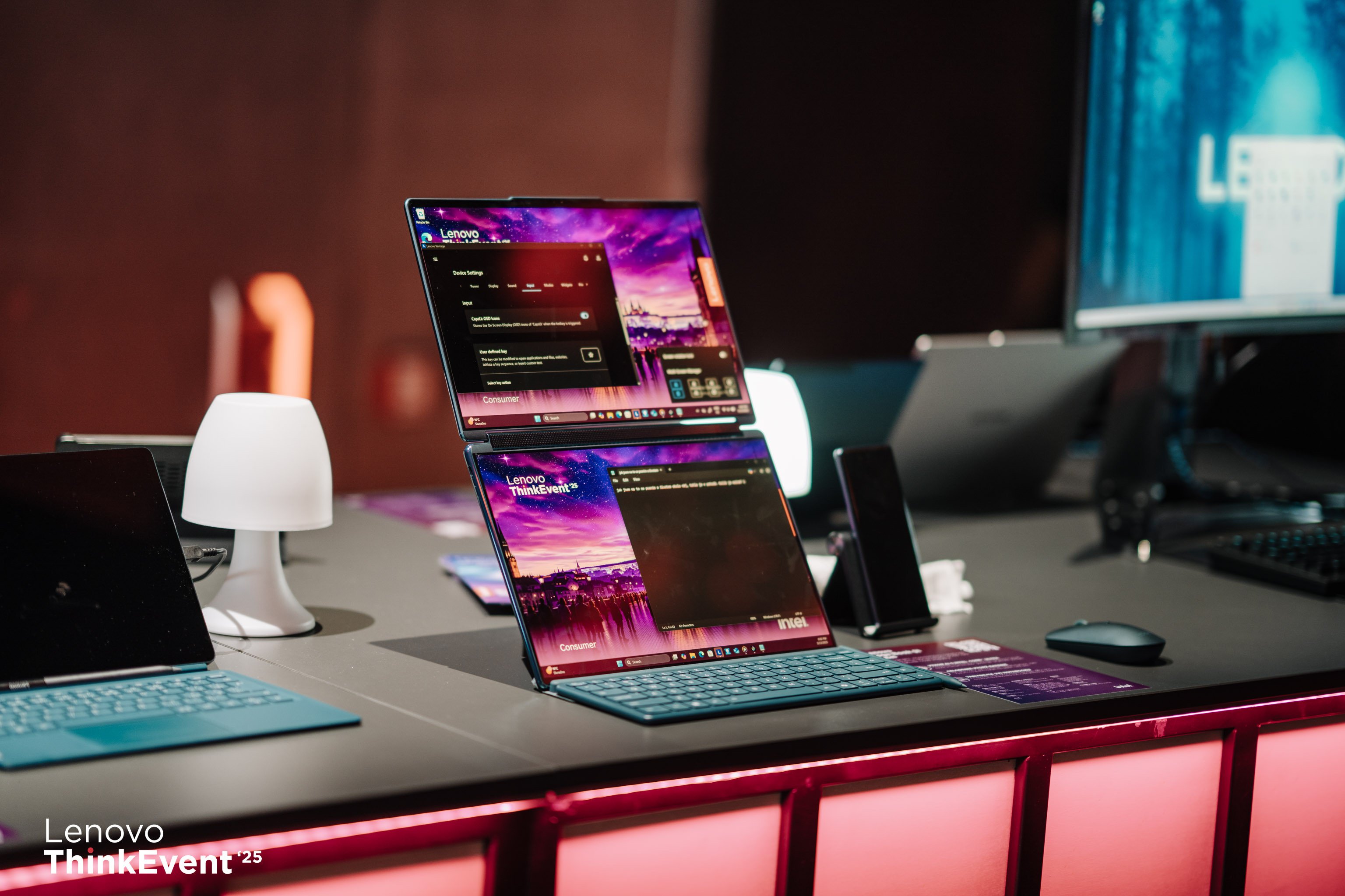 Během odpoledne si mohli účastníci vyzkoušet vybraná zařízení včetně modelů ThinkBook Plus Gen 6 Rollable s rolovacím displejem, Yoga Book 9 se dvěma obrazovkami, ThinkPad X9-14 a X9-15, Legion Go S a mnoha dalších. K dispozici byly i novinky od Motoroly.