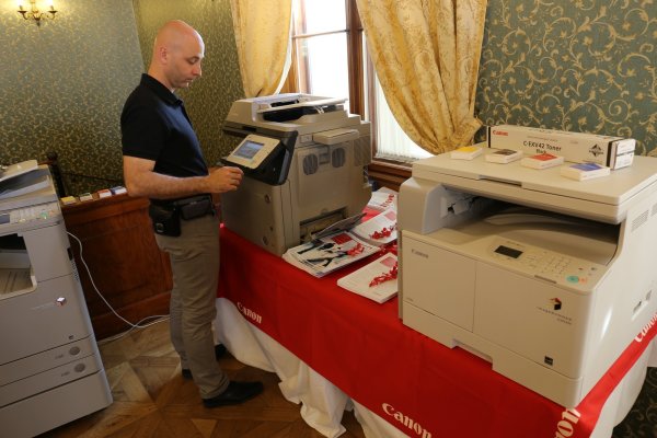 Resellery hned u vchodu uvítala půvabná hosteska a také ředitel společnosti Karel Hanzálek. V hlavním sále byla pak připravena prezentace produktů hlavního partnera BHC – společnosti Canon. Nechyběly multifunkční tiskárny, velkoformátová řešení nebo portfolio spotřebního materiálu včetně mnoha druhů papírů.