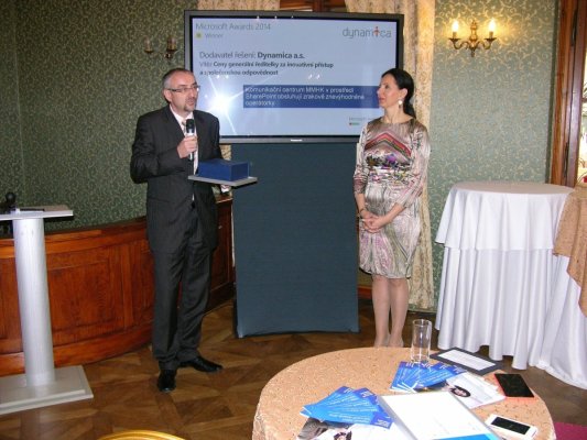Cenu generální ředitelky za inovativní přístup a společenskou odpovědnost získala společnost Dynamica za své řešení „Komunikační centrum MHK v prostředí SharePoint obsluhují zrakově znevýhodněné operátorky“.