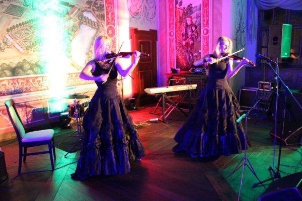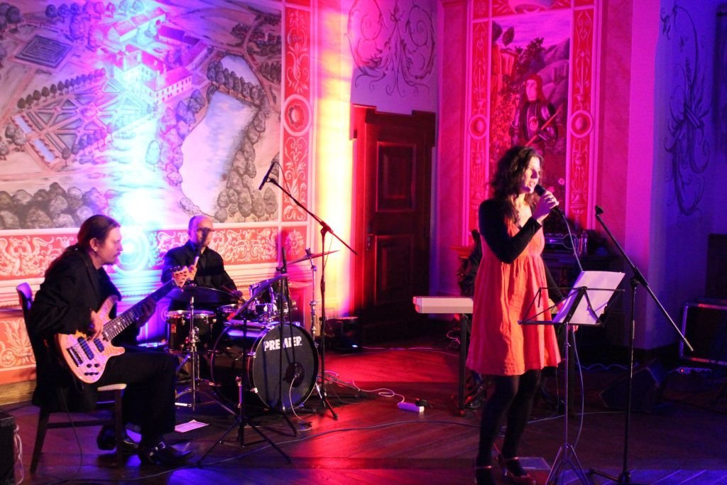 Večerní program probíhal v nádherných historických sálech zámku. V nich vystoupili, stejně jako na podobné akci eD‘ system Czech na Zámku Zbiroh v Čechách, dámské houslové duo Femme2Fatale, které následně vystřídala jazzová kapela Banda Legal.