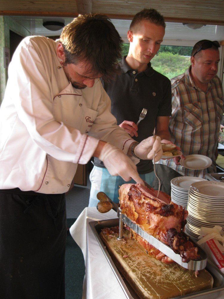 Raut plný vybraných jídel musel šíří výběru uspokojit opravdu každého - několik druhů masa, mořských plodů a zeleniny doplnila rozmanitá nabídka omáček a dalších příloh. Pokud by snad ani toto všechno někomu nestačilo, mohl si počkat také na grilovanou kýtu, po které se „jen zaprášilo“, což potvrdil i výrok jednoho z prodejců: „Rychleji obrané kosti jsem ještě neviděl.“ Na své si však přišli i příznivci sladkého, dovedně umístěného na dolní palubě.