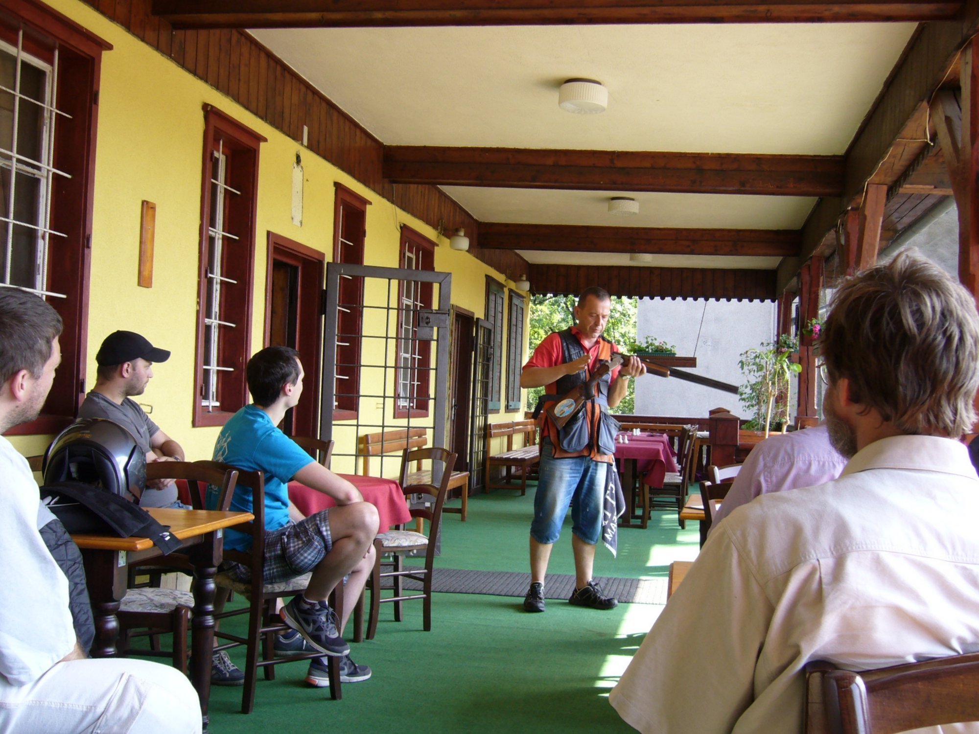 A po náročném dni plném technických informací, prezentací a vstřebávání nových informací se všichni zúčastnění přesunuli na brokovou střelnici v Soběšicích, kde si vyzkoušeli střelbu z brokovnice na holuby a celý den zakončili večerní rautem v mysliveckém klubu Hubert.