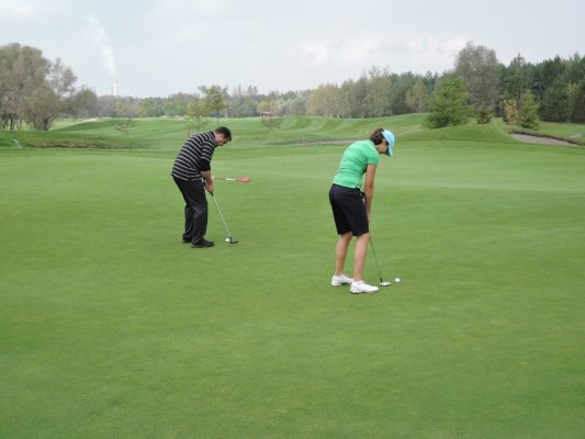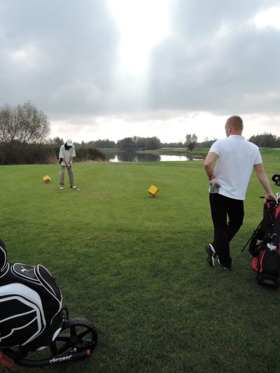 Někteří z pozvaných přijeli už ve čtvrtek večer, aby společně probrali techniku a ráno se stihli řádně rozcvičit :-). Celkem 18 golfistů se nejprve posilnilo na hru vydatnou snídaní, odpálilo pár cvičných odpalů, nabrali svačiny do bagu a po zahájení hry marshallem se pustili do souboje.