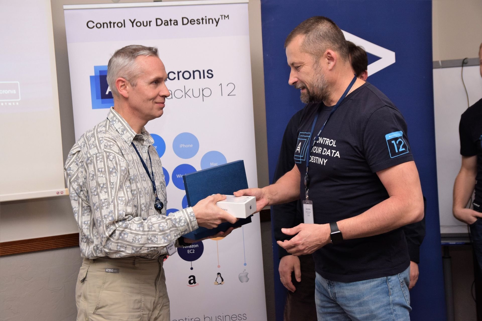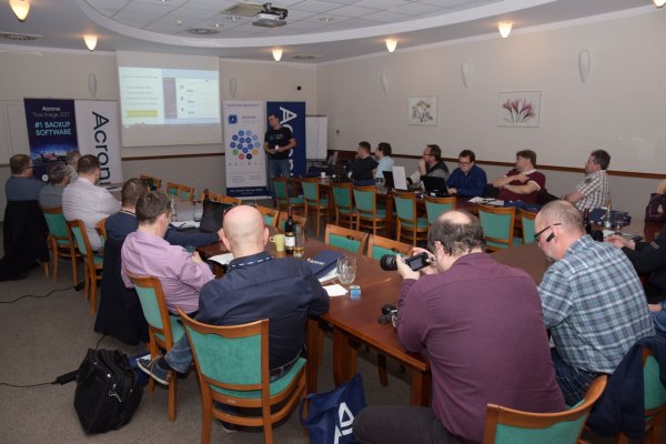 Artur Cyganek, regionální ředitel firmy Acronis pro střední a východní Evropu, nejprve přítomným poděkoval za úspěchy dosažené v loňském roce a následně se s nimi podělil o několik aktualit. Nová strategie společnosti Acronis (tzv. „new generation approach“) spoléhá na inovativní přístup, jehož cílem je dát vědět světu, že Acronis by již neměl být vnímán „jako zálohovací společnost“, ale jako poskytovatel pokročilých řešení, mezi která patří například i různé typy vícestupňového elektronického přihlašování či aktivní ochrana proti různým typům kybernetických hrozeb.