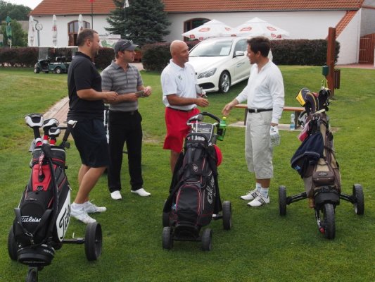Šéfredaktor Reseller Magazinu, mediálního partnera, procházel od jednoho čtyřčlenného družstva ke druhému (celkem se zúčastnily čtyři čtveřice), aby si pokaždé připadal jak bájný Jonáš na velrybářské lodi. Kam přišel, tam to žbluňklo do jezírka nebo zašustilo v pískovém bunkru. Nebo alespoň skončil golfový míček v nedohledatelném autu. Nebo je asi takový průběh golfového zápasu normální. V každém případě se ale všichni těší na další kolo, které má být na Štiříně.