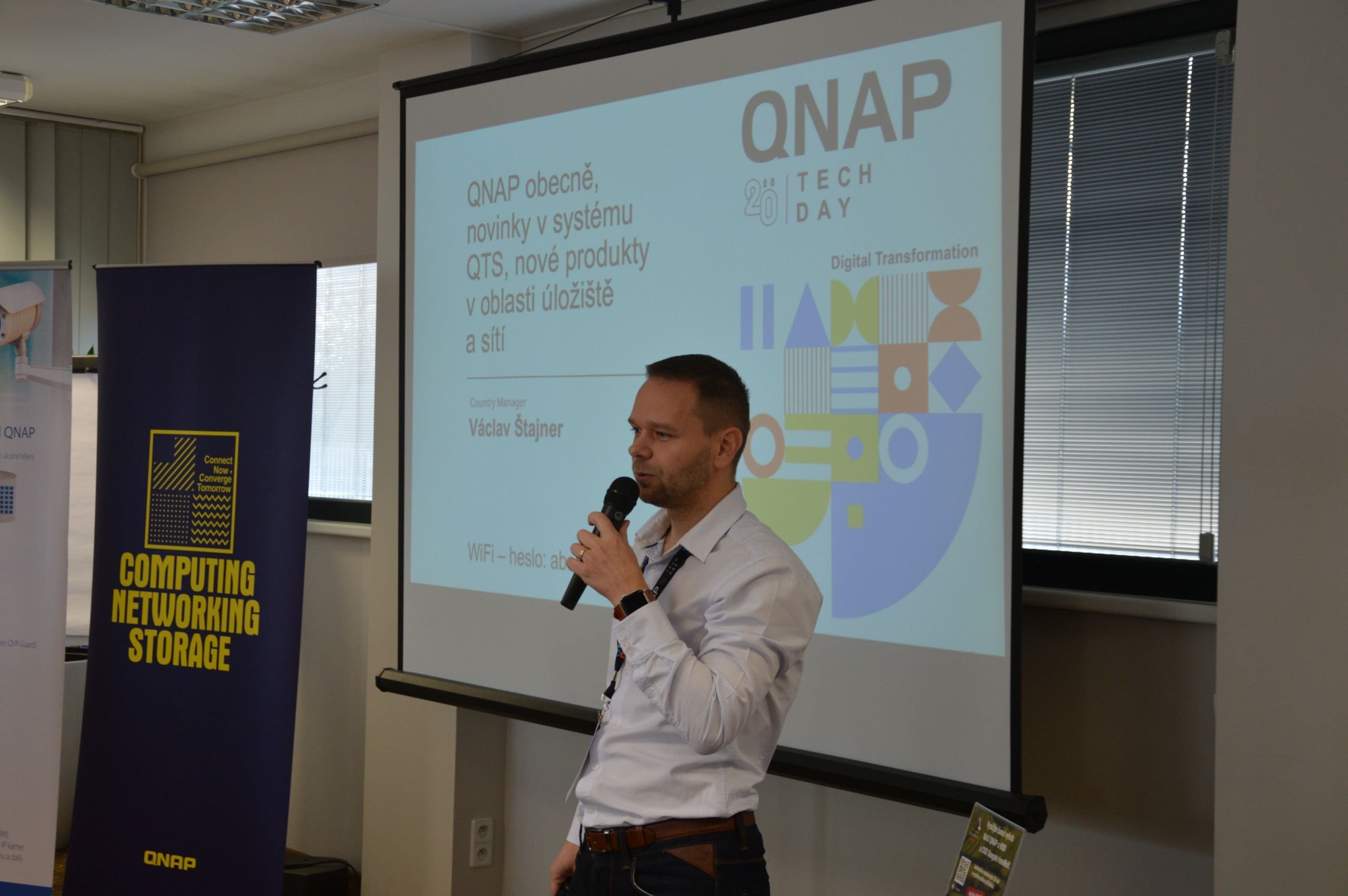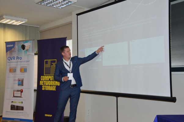 Konferenci zahájil Václav Štajner, country manager QNAPu pro Českou republiku, který se následně ihned zhostil také první naplánované prezentace, jejímž cílem bylo hosty seznámit s nejdůležitějšími novinkami. Kromě toho, že QNAP aktuálně nabízí široké portfolio úložišť pokrývající klíčové zákaznické segmenty (domácnosti, SMB i enterprise), můžeme v jeho nabídce najít také další produkty, nejčastěji síťové prvky a další doplňky. Přesah můžeme sledovat např. také do segmentu videodohledových řešení a dalších oblastí.