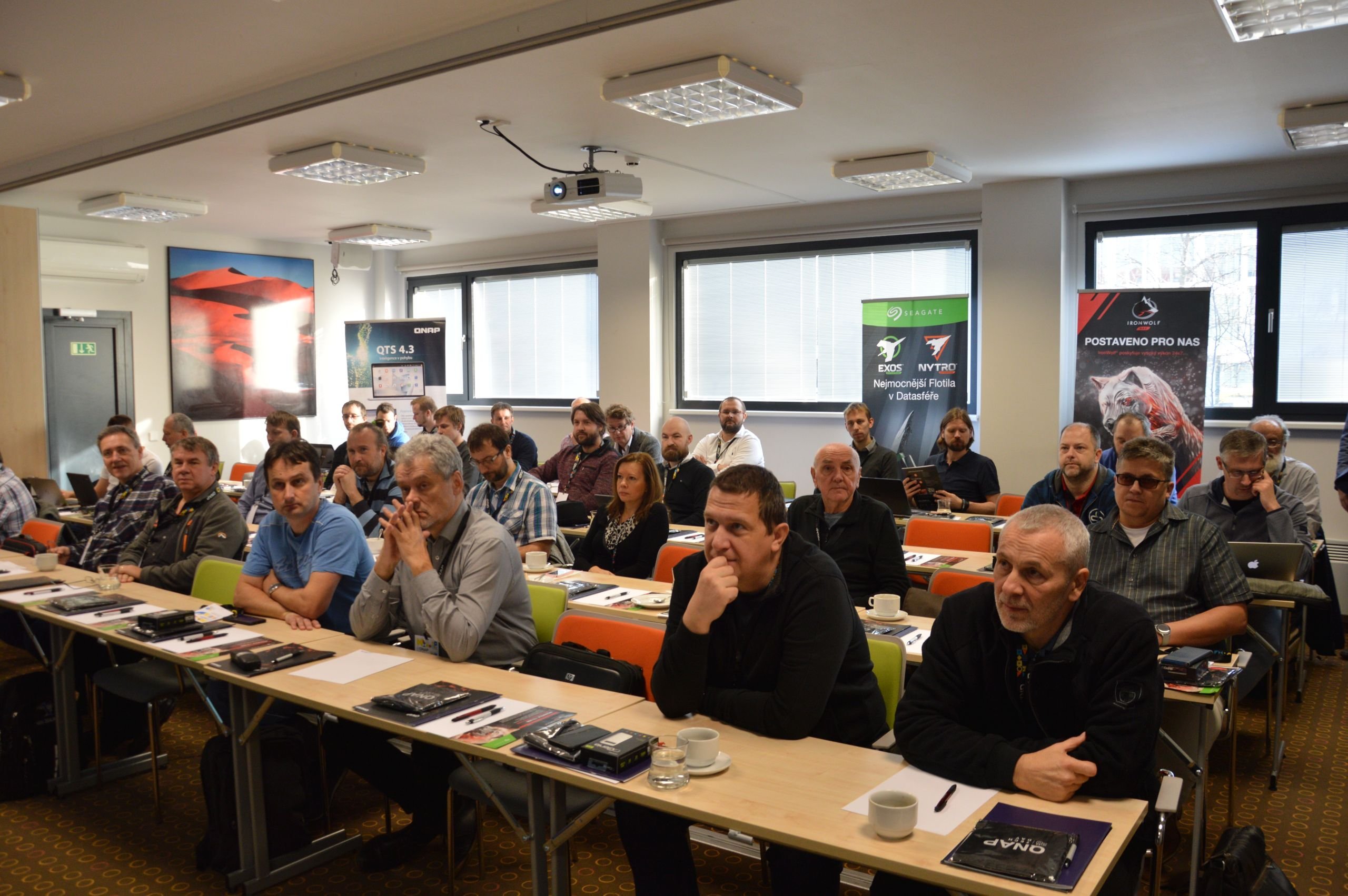 Po obědě proběhly prezentace zaměřené na dohledová kamerová řešení QVR Pro a QVR Face a tzv. Demo Lab tvořený praktickými ukázkami (šlo např. o ukázky možností kamerových systémů nebo virtualizaci). Během dne mohli přítomní také soutěžit o balíček QNAP NAS serveru s HDD Seagate. Na závěr nechyběl ani prostor pro diskusi se zástupci obou přítomných značek.