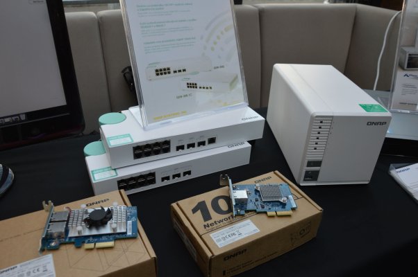 Stále důležitější roli hrají v nabídce QNAPu i síťové prvky, ať už použitelné samostatně, ale zejména jako vhodný doplněk úložiště. Zaujmou např. 10Gb switche, a to s optickým či metalickým připojením. V tomto segmentu se již brzy můžeme těšit např. na modely QSW-308-S, QSW-308-1C nebo QXG-10G2T-107. Nechybí ani různé typy PCIe komunikačních karet a další příslušenství.