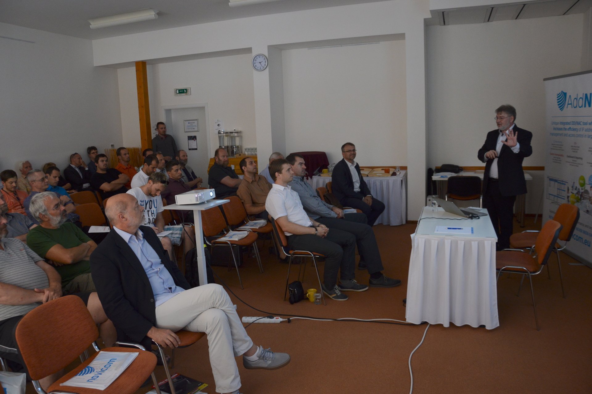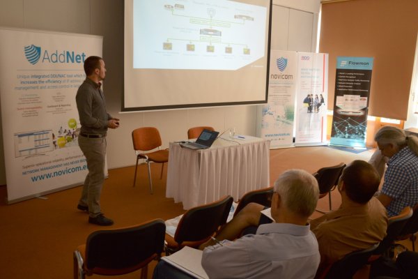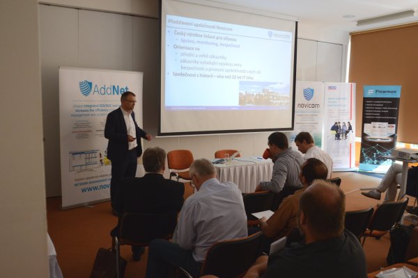 Prvním přednášejícím byl zástupce pořadatelské společnosti – její obchodní ředitel Jindřich Šavel, který přítomné na začátku své prezentace přivítal a zkráceně nastínil, na jaké otázky najdou posluchači na semináři odpovědi. Ve své prezentaci nastínil hlavní činnost společnosti Novicom a ve stručnosti se věnoval také legislativě zajišťující bezpečnost, jako jsou směrnice NIS, Zákon o Kybernetické bezpečnosti a nařízení GDPR, které vstoupí v účinnost již za necelý rok. Druhým přednášejícím byl Antonín Ševčík z BDO IT, který posluchačům sdělil důležitá fakta a postupy týkající se GDPR. Přednáška přihlížející tak zaujala, že ji průběžně doplňovali o věcné dotazy. Třetím a zároveň posledním přednášejícím z prvního bloku byl zástupce společnosti Flowmon Networks Lukáš Števko, který přítomným představil firmu a její hlavní cíle a plány nejen do konce roku 2017. Zdůraznil také důležitost flow monitoringu, díky němuž lze podle společnosti Gartner odhalit až 80 % bezpečnostních potíží (podle Flowmon Networks lze procento odhalených problémů navýšit až na 95 %).