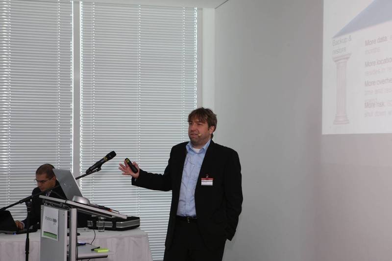 V 8:15 hodin čekala návštěvníky registrace a ranní káva, v 9 hodin návštěvníky přivítal moderátor celé akce Martin Zikmund. Losovalo se o čtyřkanálový vrtulník na dálkové ovládání a pak již následovala první přednáška, a to Martina Zikmunda, který hovořil o současných trendech v podnikových datech. Zdeněk Duchoň z HP přiblížil, jak lze v současnosti řešit efektivní zálohování.