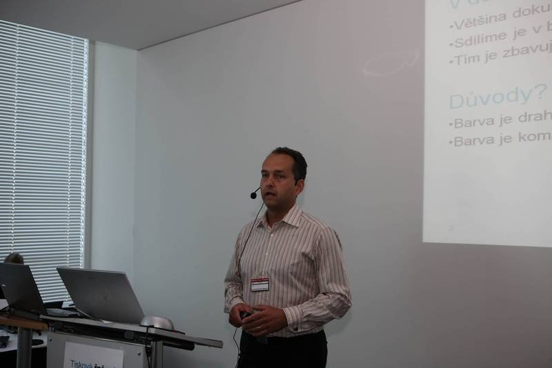 Úvodní přednáška patřila Martinu Zikmundovi a tématu současných trendů v oblasti tiskových řešení. Následující přednáška byla o tom, proč tisknout barevně a vedl ji Dušan Novotný ze společnosti Xerox. Dopolední blok uzavřel Tibor Brunclík ze společnosti Toner Expres, který vedl přednášku na téma Managed Print Services z pohledu nezávislého poskytovatele aneb jak neměnit jednu značku za druhou nesmyslně.