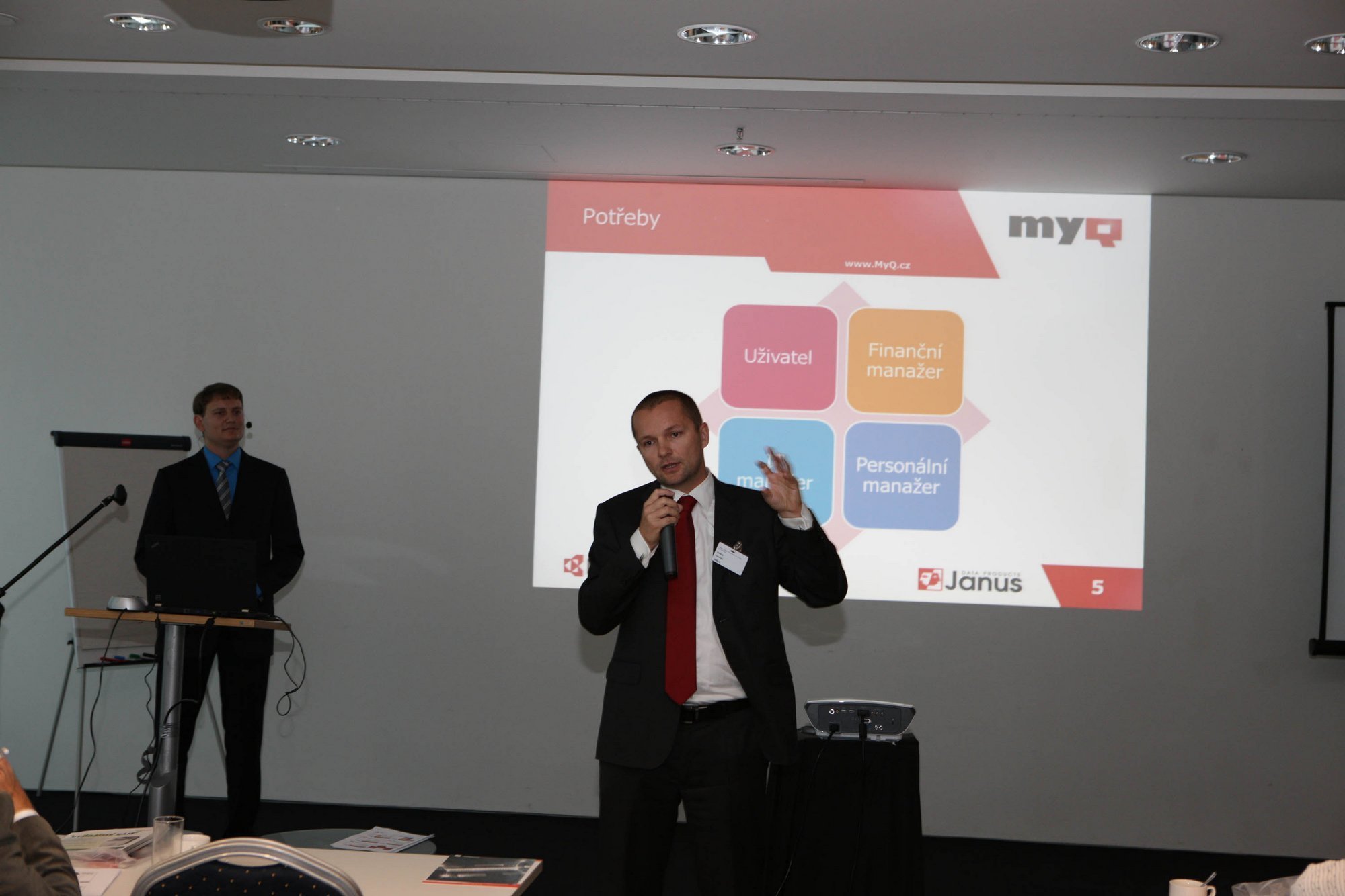 Na něj navázali Martin Januš, generální ředitel společnosti Janus a Ondřej Lutovský, také ze společnosti Janus a zároveň spolumajitel poradenské společnosti, představili „Superpodnik“ – spojení Kyocera, Janus a MyQ. Tiskárny Kyocera mají mj. tiskové válce potaženy vrstvou sloučeniny křemíku, takže dosahují delší doby do jeho výměny. Dále představili tiskové řešení MyQ pro inventarizaci, řízení, správu tisku a jeho nákladů. Přestože má MyQ ve světě i u nás konkurenci, uchovává si prvenství v jednom unikátním bodě – má totiž nejen tiskový, ale i servisní modul. Výhodou je také jednoduché licencování MyQ.