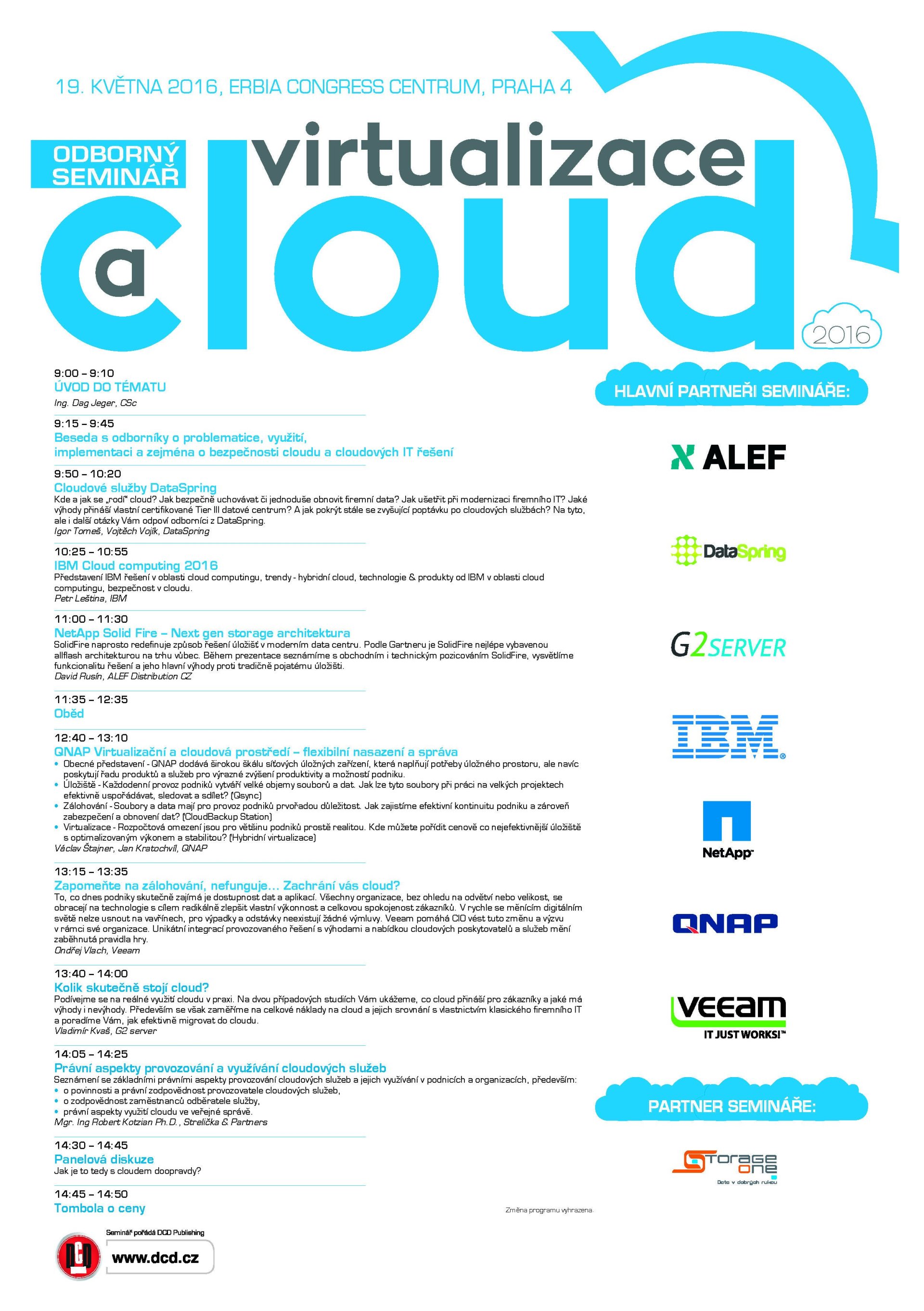 Vydavatelství DCD Publishing uspořádalo 19. května 2016 další odborný seminář pro IT ředitele a manažery na oblíbené téma Virtualizace a cloud.