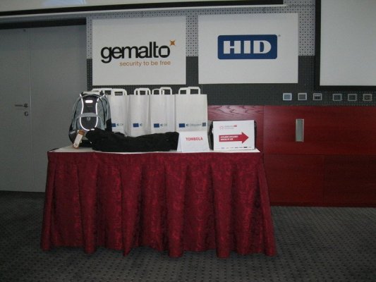 Po přestávce na kávu následoval druhý blok přednášek, Jérome Soufflot z Gemalto hovořil na téma Evolution of Authentication market & Beyond – New challenges for enterprises. Václav Lín z OKsystemu zavedl řeč na využití OKsmart ve Windows 7 a v Linuxu. Červí díry v RFID přiblížil Tomáš Rosa z Raiffeisenbank a poté Petr Klupka z HID Global nastínil posluchačům téma Propojená bezpečnost.