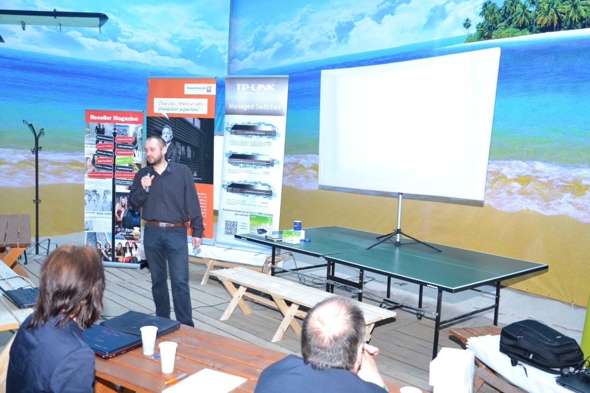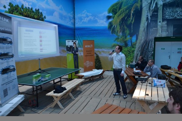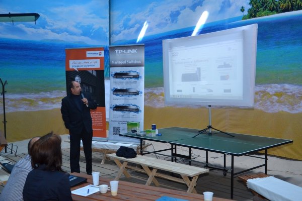 Setkání krátce zahájil Jan Duda, majitel pořádající společnosti PCV Computers. Přivítal přítomné, poděkoval jim za účast a následně předal slovo Kryštofovi Klímovi, který zastupoval společnost Mikrotik, protože svou prezentaci si schoval na později. Kryštof Klíma kromě firmy samotné, jejího portfolia a spolupráce s PCV Computers představil také novinky v nabídce routerů a switchů včetně zmínky o jejich „optických variantách".