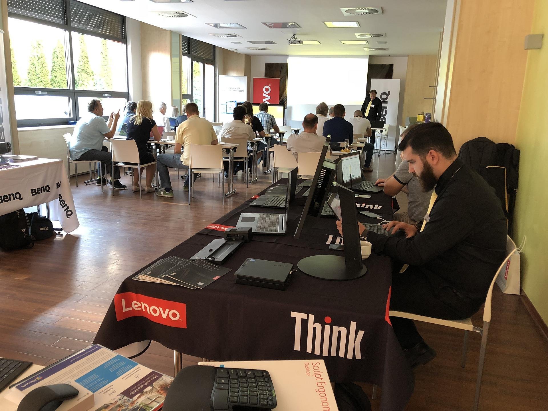 Jaroslav Rakušan ze společnosti Lenovo přednášel ve dvou blocích. První část se týkala partnerského programu, podpory prodeje přes partnery SWS a podpůrných nástrojů pro úspěšný prodej značky Lenovo. Ve druhé části šlo o přiblížení produktového portfolia. Po krátké přestávce unit manager SWS Jiří Karhánek seznámil přítomné s novinkami v produktech a procesech Microsoftu, přičemž hlavní důraz kladl na zapojení partnerů do CSP programu u SWS.