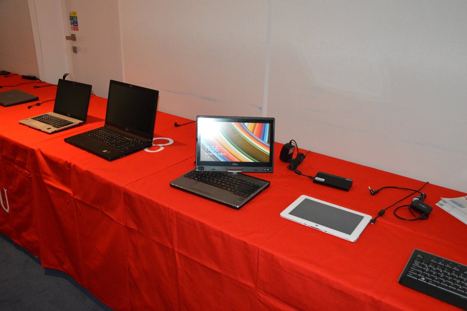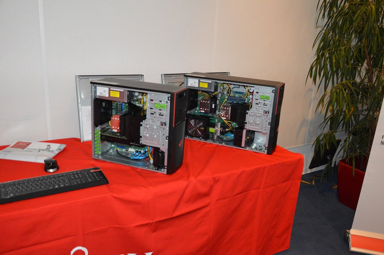 Klientská zařízení představili Samy A. Khaleg a Robert Beneš. Nejprve krátce prošli jednotlivé produktové kategorie z portfolia Fujitsu a vybraným modelům se následně věnovali podrobněji. Za vyzdvižení stály zejména notebooky Lifebook U904, S935 a U745 či ultrabooky řady E7. Z rodiny tablet PC byly zmíněny například modely T935, T725, Q775 či Q555. Prostor se dostal i na stolní a přenosné pracovní stanice Celsius v různých variantách.