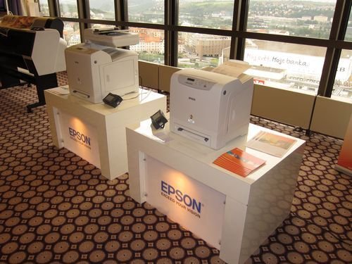 Na ploše konferenčního sálu s výhledem na panorama Prahy byly k vidění v létě představené a nyní uváděné inkoustové „byznys“ tiskárny a multifunkce řady WorkForce, laserové tiskárny a multifunkce, velkoformátové tiskárny, nový projektor pro domácí kino s přehráváním z libovolného mediatabletu, tepelné a jehličkové fiskální tiskárny (POS) a pomyslnou třešničkou na dortu bylo předvádění domácího kina ve 3D (s brýlemi).