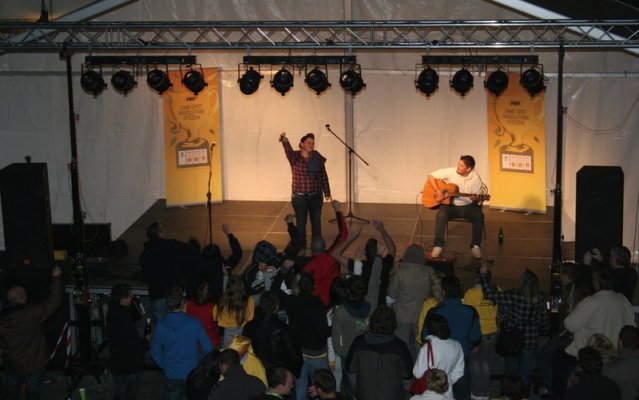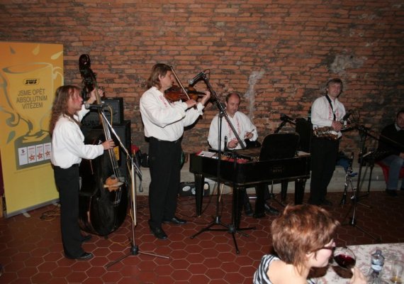 Večerní program probíhal jak na nádvoří zámku, kde koncertoval Michal Šeps s Alžbětou Kolečkářovou, tak ve sklepě. V něm se ochutnávalo víno za poslechu cimbálové muziky Réva.