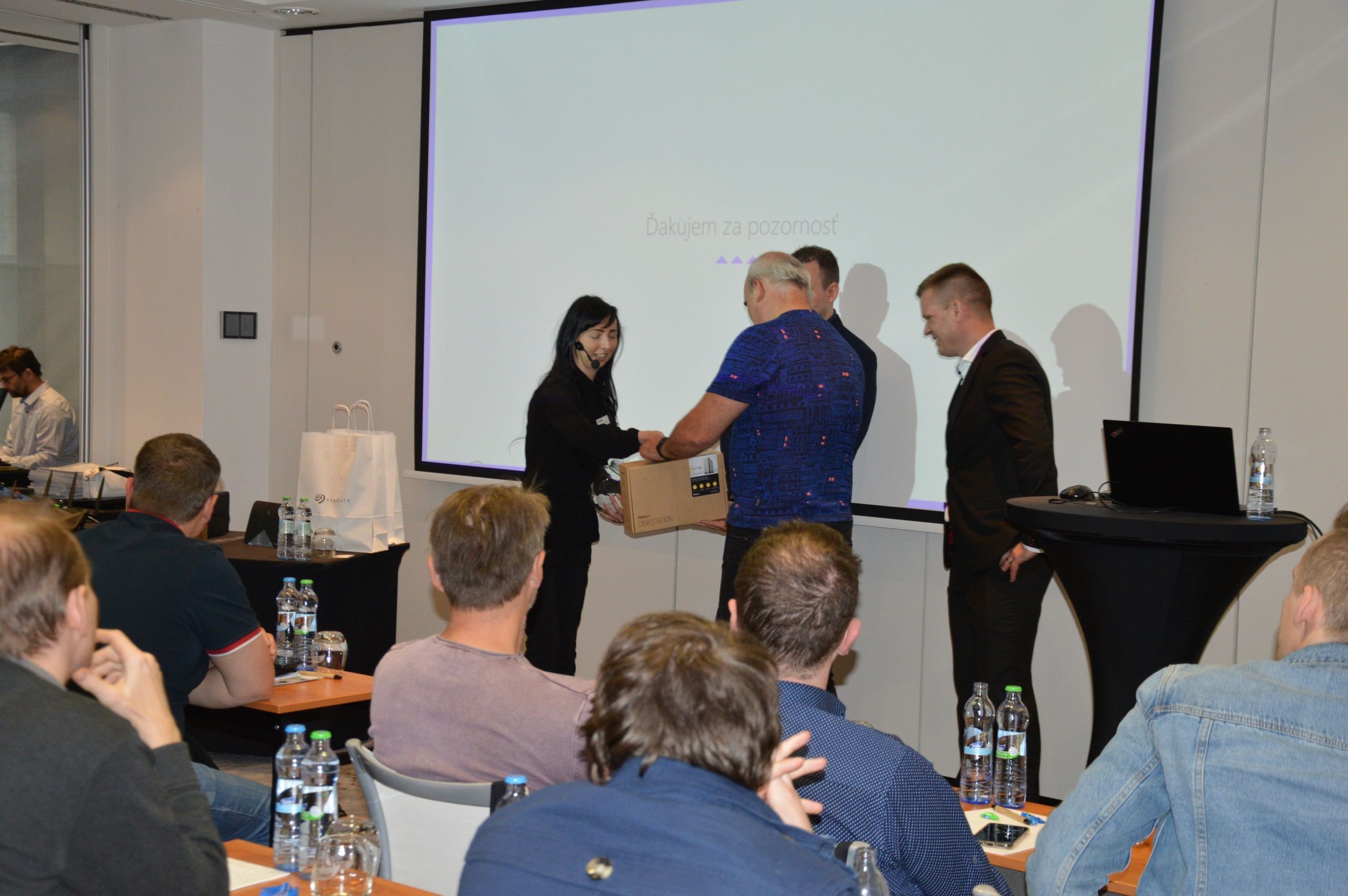 Hned v úvodu Janka Chytráčková, produktová manažerka v Synology, přítomným sdělila nezbytné organizační pokyny a následně představila své kolegy, se kterými mohou i čeští a slovenští reselleři přijít do styku. Partnerům „se ukázala“ také nová posila v týmu, která od července letošního roku nahradí Lubomíra Tományho, který v Synology skončil. K neméně důležitým sdělením patřilo také připomenutí možnosti získat projektovou podporu pro obchody zahrnující řešení MailPlus, Surveillance a Active Backup formou cenového zvýhodnění na hardware i software.