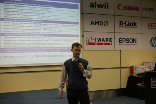 Přestávka na kávu a občerstvení byla plná otázek na vystavovatele, posluchači měli možnost prohlédnout si některé produkty a doptat se na informace, které je zajímají. Po přestávce byl na pořadu dne poslední blok přednášek, které započala společnost Epson a Marcel Divín, který mluvil o Epsonu jako o ideálním partnerovi pro SMB segment.