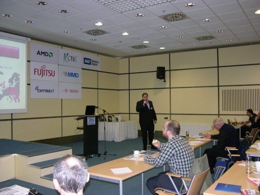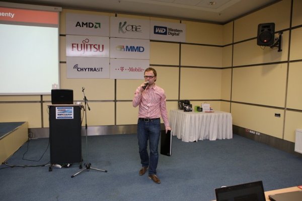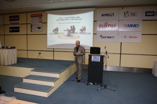 První přednáška patřila tématu PC a komponenty, kterou vedl Richard Voigts. Po něm přišli na řadu David Koďousek s partnerským programem a David Lev s další generací HP notebooků, oba z Hewlett Packard. Následovala přednáška AMD Fusion je tady Martina Káni z AMD.