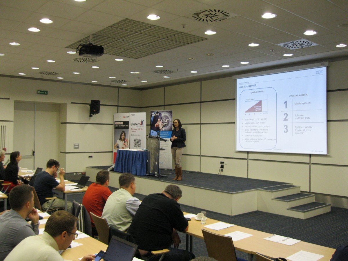 Na toto téma navázala neméně důležitá přednáška o partnerských programech, kterou odprezentovala Martina Kocourková s Martinem Moravcem, RR program leaderem v IBM. Partneři se dozvěděli zejména o způsobu, jak získat zpětné rabaty a dosáhnout na různé bonusy, které tyto programy přinášejí. Jak zajímavé možnosti skrývá IBM Financování, se účastníci dozvěděli v navazující přednášce od Petry Peštálové, manažerky IGF v IBM. Při její přednášce byly představeny široké možnosti úspor, zvýhodněných nákupů i úrokových sazeb.