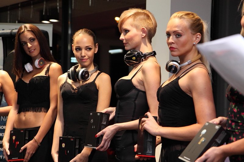 O tom, že sluchátka Ferrari by Logic3 zaručují kvalitní přenos zvuku, se mohli hosté večera přesvědčit doslova na vlastní uši. Po úvodní módní přehlídce, kdy krásné modelky oděné v závodních uniformách sluchátka představila, byly všechny typy sluchátek Ferrari by Logic3 vystaveny k vyzkoušení.