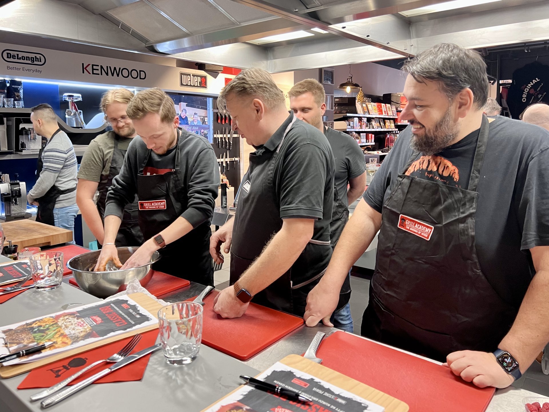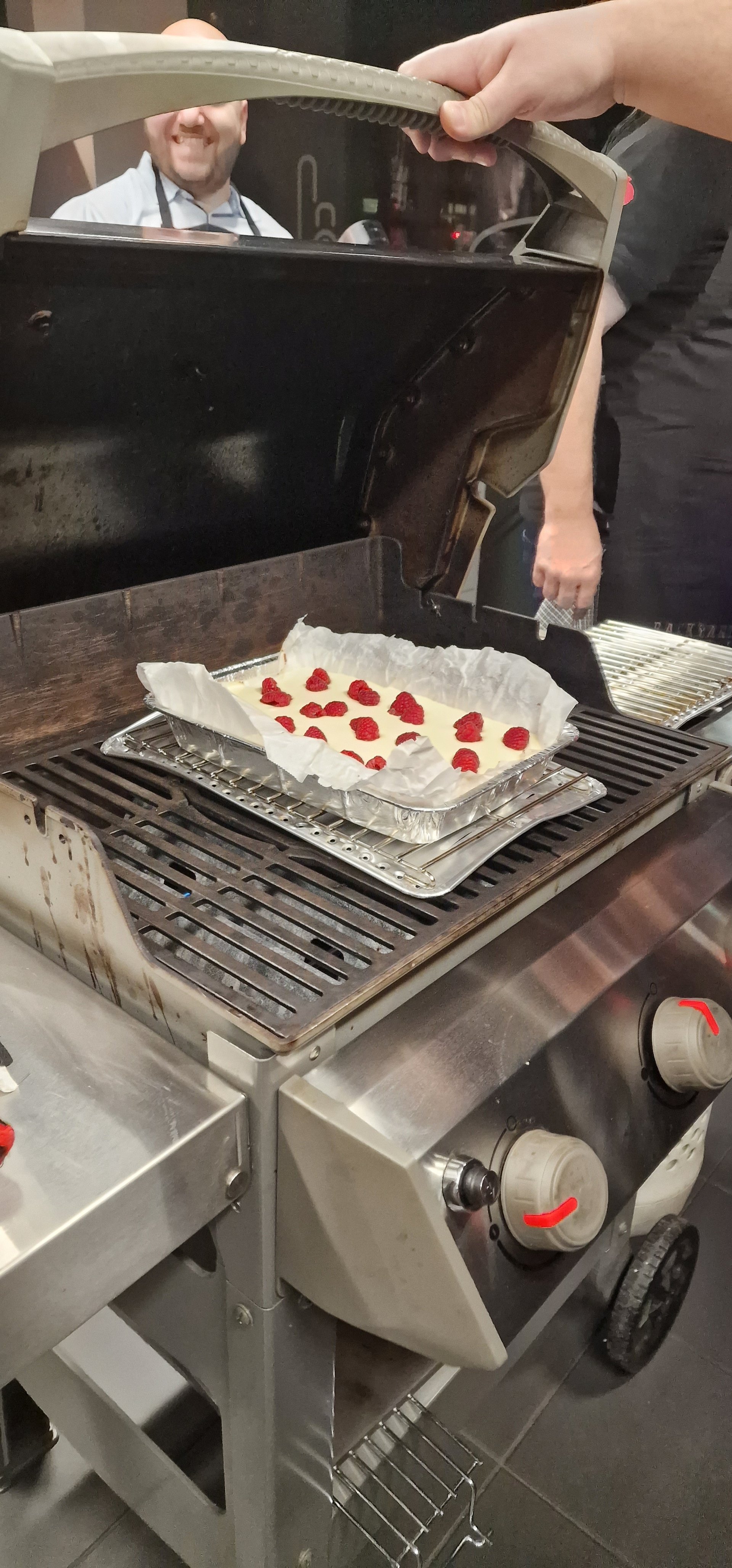 A co se grilovalo? Menu bylo pestré – pizza z grilu na rozjezd, uzený losos jako předkrm, jako hlavní chod se podávala krkovička s gnocchi a vše bylo završeno cheesecakem pečeným na grilu. Účastníci se navíc dozvěděli spoustu užitečných informací o tom, jak správně grilovat, kam maso na grilu umísťovat, jak správně s grilem zacházet, či jak otáčet steaky. Také se naučili správně upravit hovězí flákotu (rare, well done atd.) a používat další příslušenství.