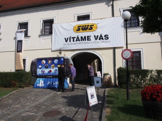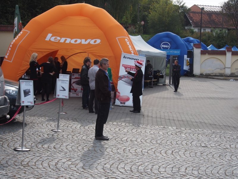 Na nádvoří prezentovala společnost Sony, před zámkem pak Acer, Asus, Dell (technologie i zabíjačku), HP, Lenovo a Brother (se svými Hummery).