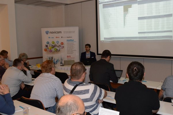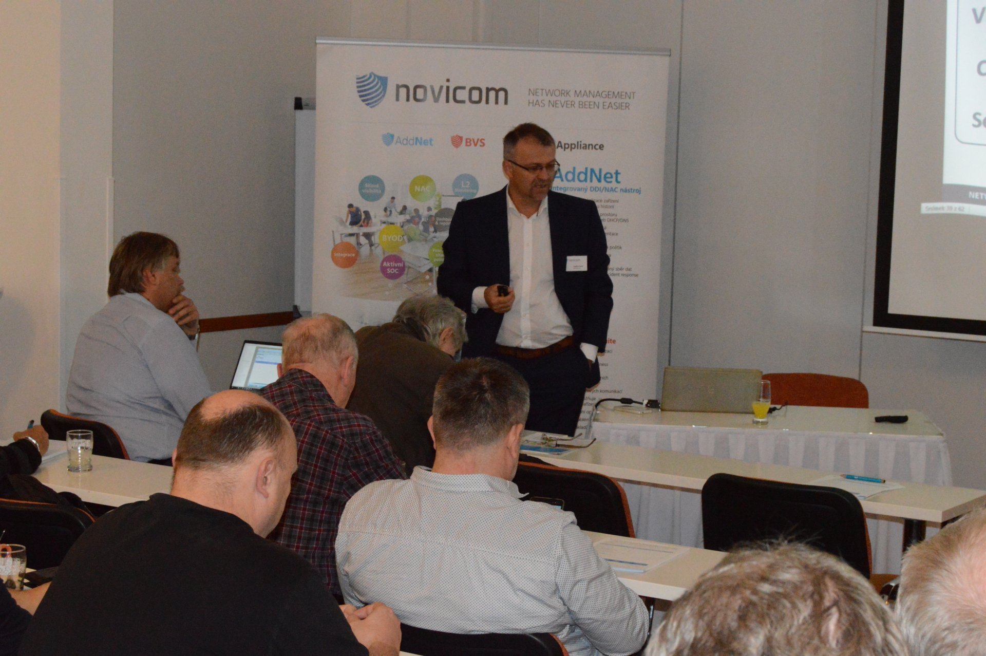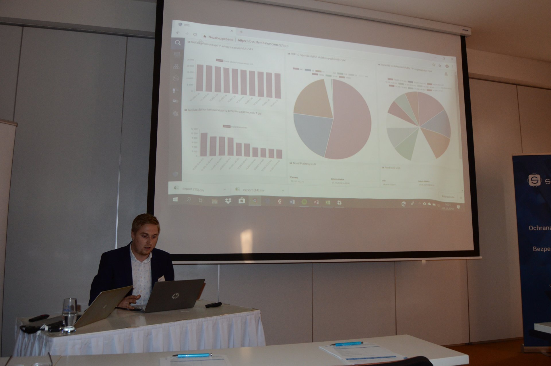 V první prezentaci se pan Šavel zaměřil na aktuální trendy v oblasti kybernetické bezpečnosti. Zmínil také problematiku bezpečnosti, především pak nepřetržitého dozoru, který je v dnešním světě, překypujícím kybernetickými nebezpečími, téměř nutností. V následující přednášce se pak opět Jindřich Šavel zaměřil na otázku bezpečnosti, i když z poněkud neobvyklého hlediska. Přítomným totiž nastínil účel nejnovějšího přírůstku mezi softwarovými řešeními společnosti Novicom – řešení BVS. Ten spočívá v kompletním zajištění přehledu v síti. Správce si tam může zjistit návaznost s jednotlivými softwary a hardwary. Lze tak například předejít případným nezamýšleným výpadkům webových stránek kvůli plánované odstávce serveru. Přednášku o BVS oživila i praktická ukázka programu přímo v akci v podání Jakuba Šujanského taktéž zastupujícího Novicom. Třetí prezentace se chopil Roman Zavadil ze společnosti Safetica, jenž přítomným prezentoval především řešení zaměřené na ochranu citlivých dat. Díky tomuto řešení se tak lze chránit před jednou nejnebezpečnějších hrozeb – uživatelům. Zamezí se tak jak záměrným, tak i neúmyslným únikům citlivých dat.