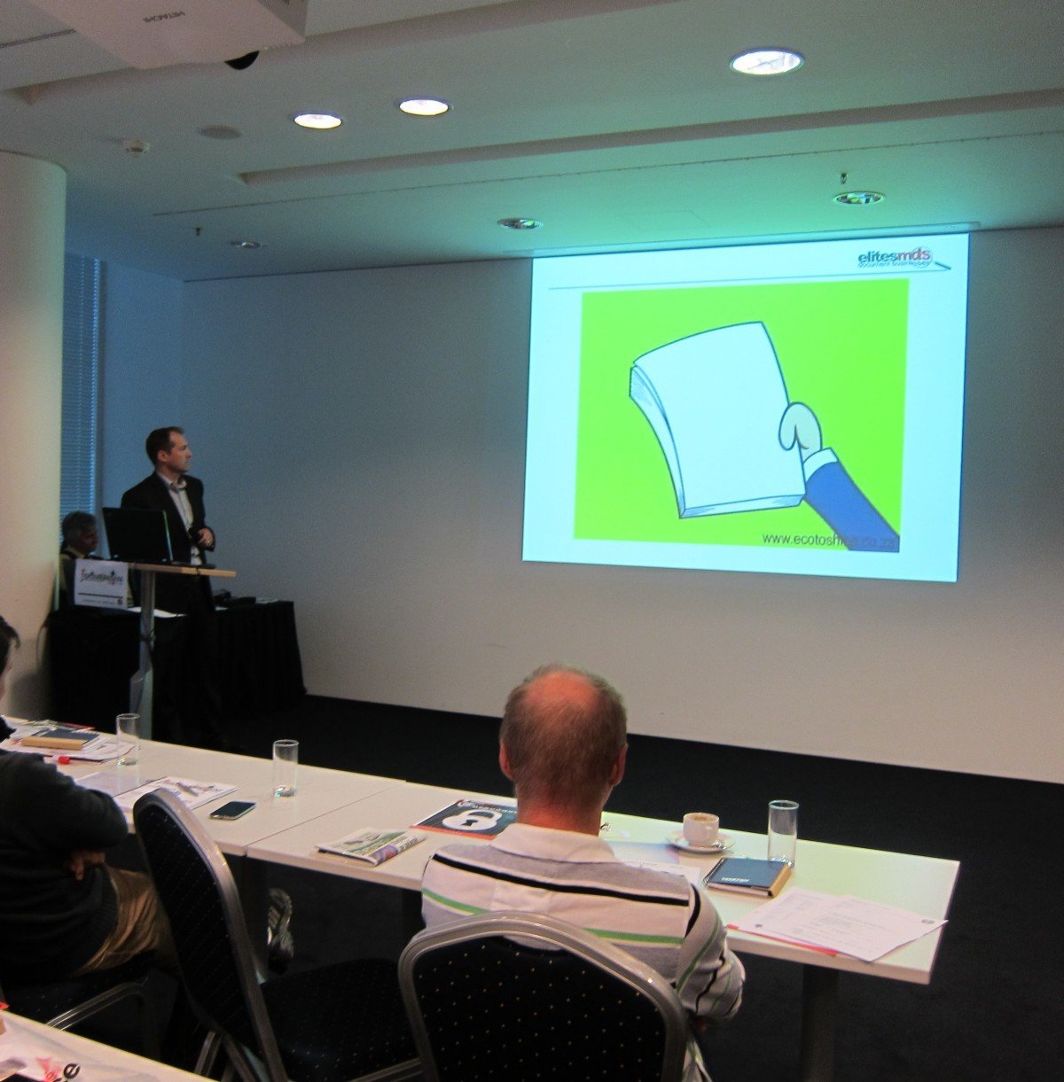 Petr Horák z Elites MDS hovořil o multifunkčním stroji s neutralizační jednotkou Toshiba, který dokonce označil za revoluci v tisku. Sestava multifunkčního tiskového stroje s neutralizační jednotkou je schopna naskenovat a následně obnovit papír pro další použití.