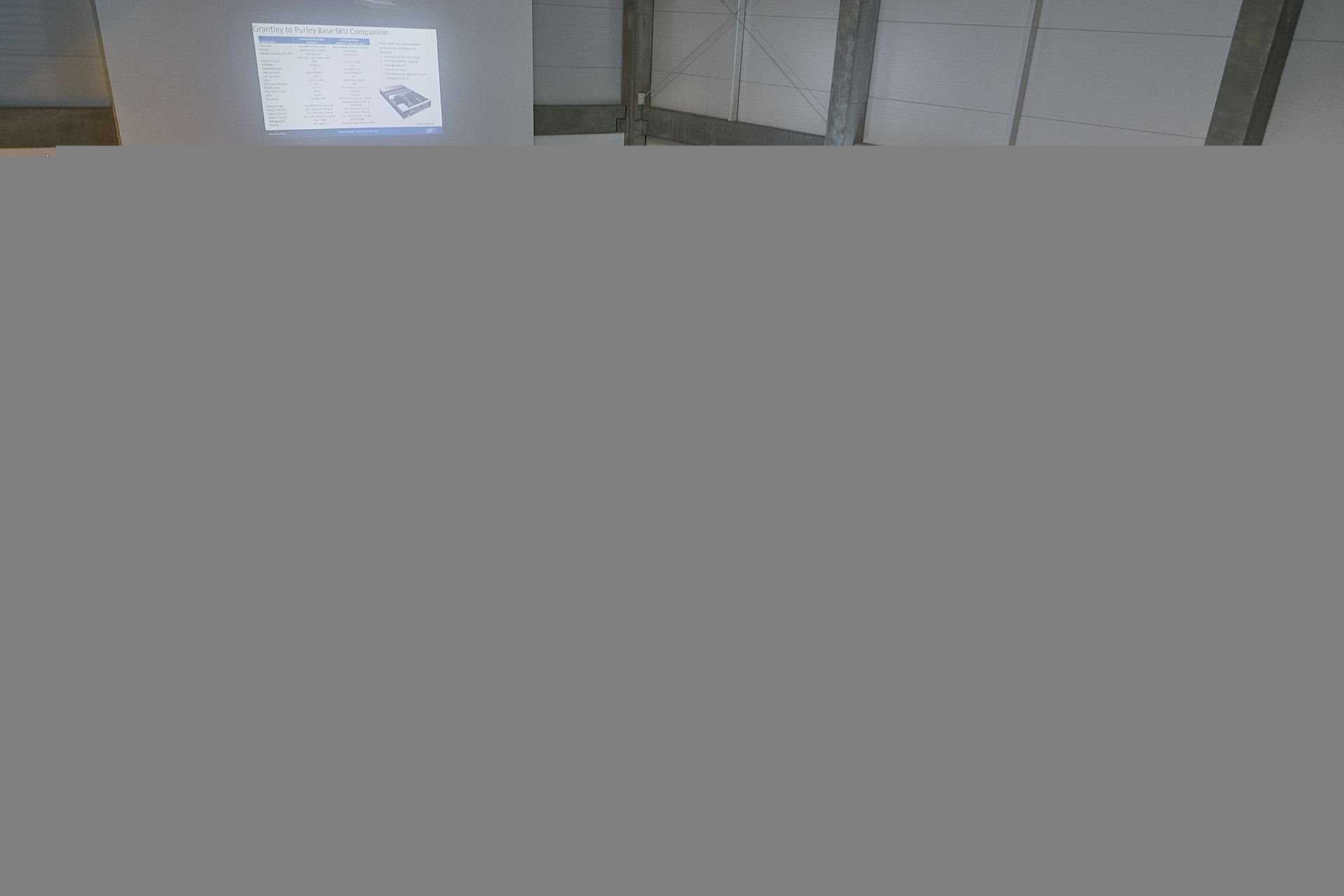 Xeon Phi, zastoupené platformou Adams Pass, a jejím možným nasazením na trhu. Informoval také o technologii Omni-Path (100Gb řešení) a souvisejícím hardwaru, jako jsou adaptéry a switche, a porovnal ji s konkurenční technologií. Stručně představil názvosloví nových platforem Purlay, jako jsou Wolf Pass a Buchanan Pass.