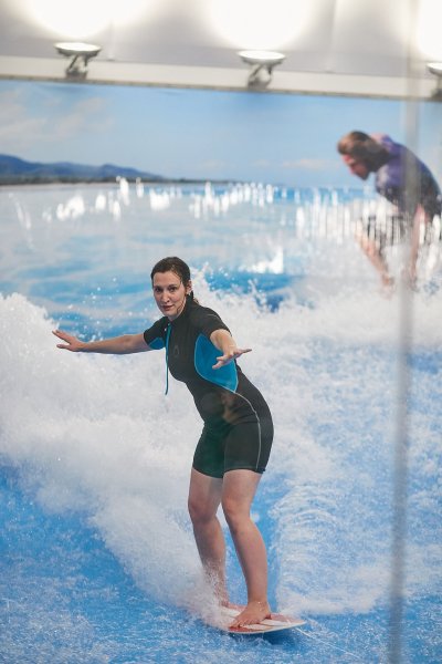 Profesionální instruktoři indoor surfingu nejprve předvedli svou exhibici a poté už vyzvali zájemce, aby vklouzli do neoprénů a zkusili si také sjet svou první vlnu. Reakce hostů byly nadšené, neboť instruktoři dokázali na surfařské prkno postavit i ty, kteří jinak extrémním sportům neholdují.