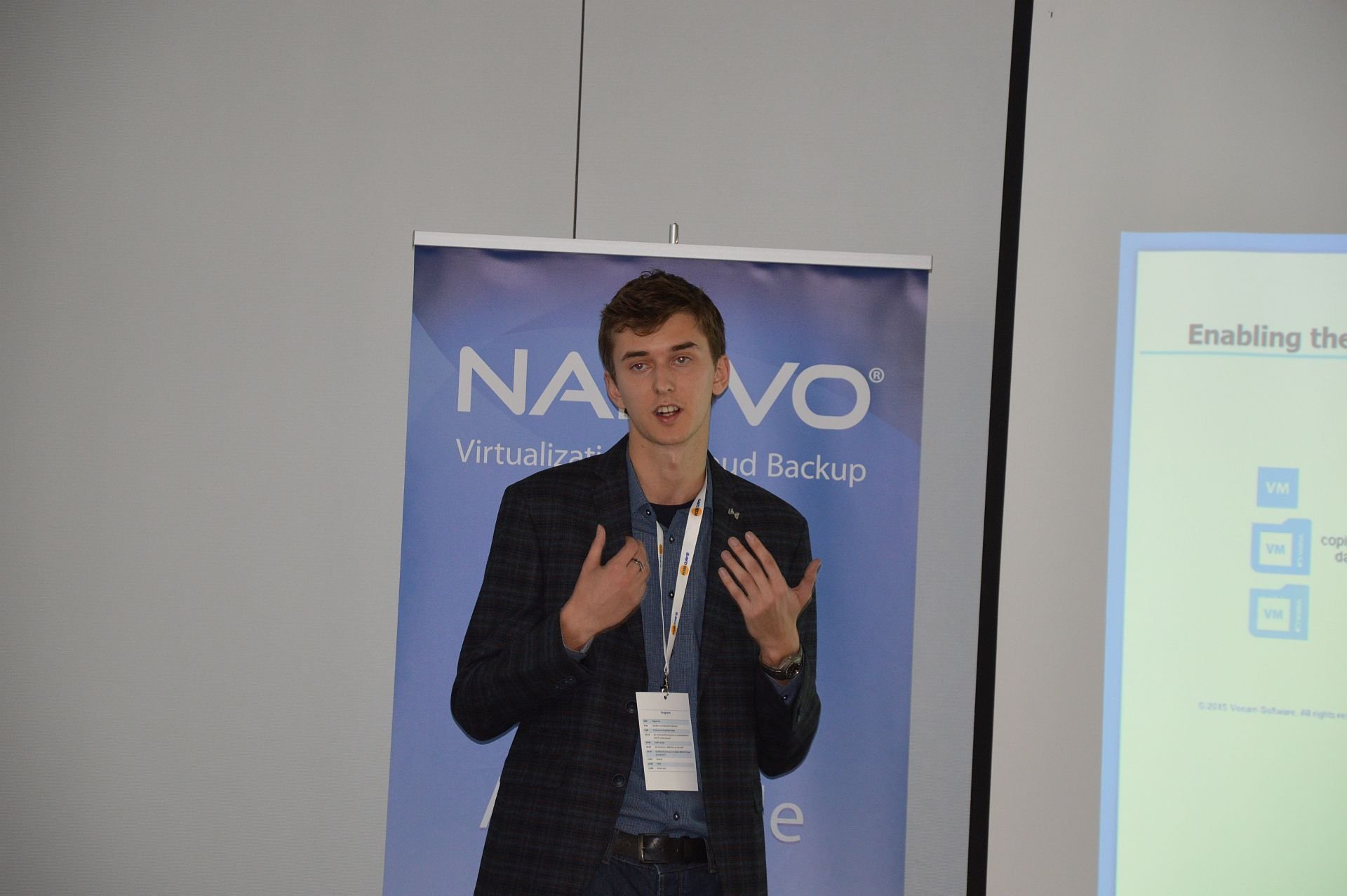 Druhé části prezentace společnosti StarWind se zhostil Andrew Tuzov působící na pozici senior manager of special projects. Andrew svou prezentaci zahájil ve všeobecné rovině, kdy nejprve zmínil zásady správného zálohování, prostřednictvím kterých se dostal až k řešením společnosti StarWind, jejich pojetí a největším výhodám a odlišnostem ve srovnání s konkurencí. Partneři se následně seznámili i s produktovým portfoliem zahrnujícím tzv. hyperkonvergovaná zařízení, storage zařízení a zařízení pracující s tzv. virtuálními páskami (VTL).