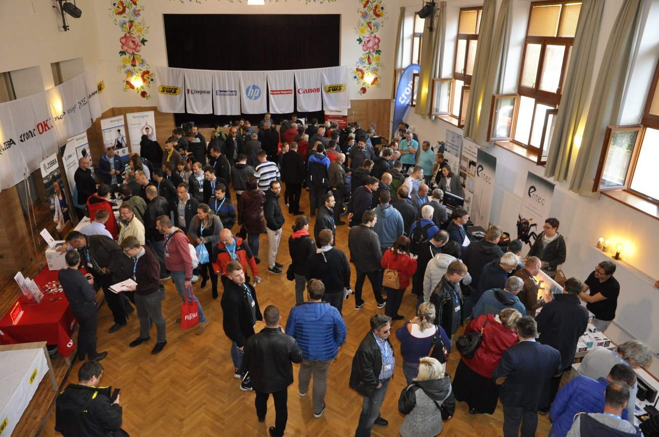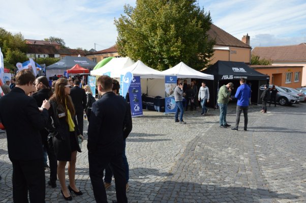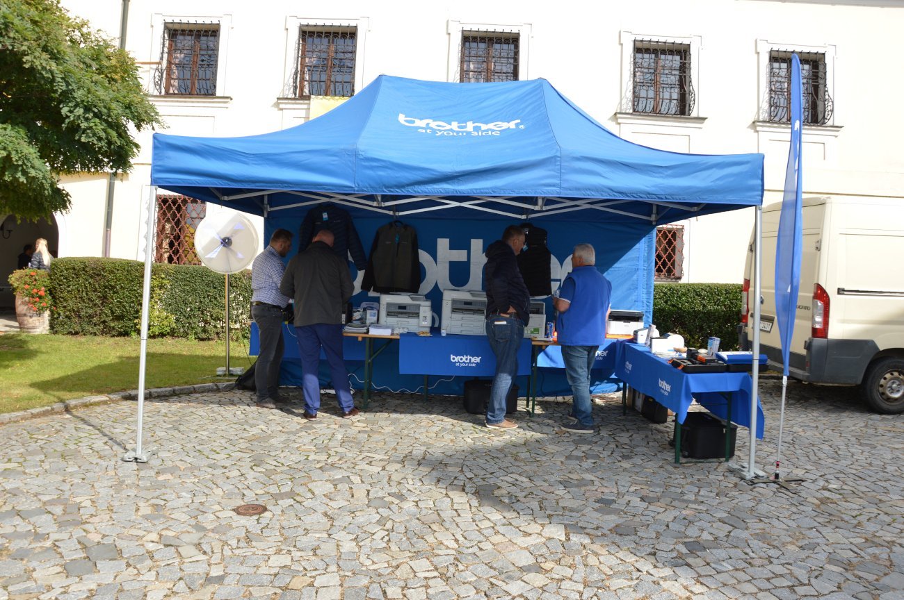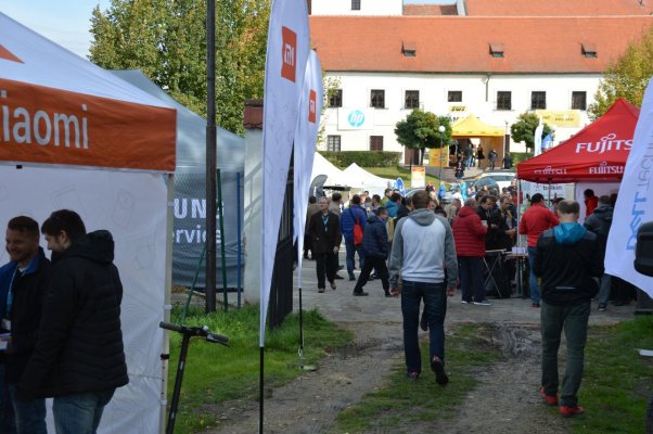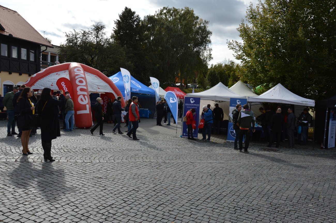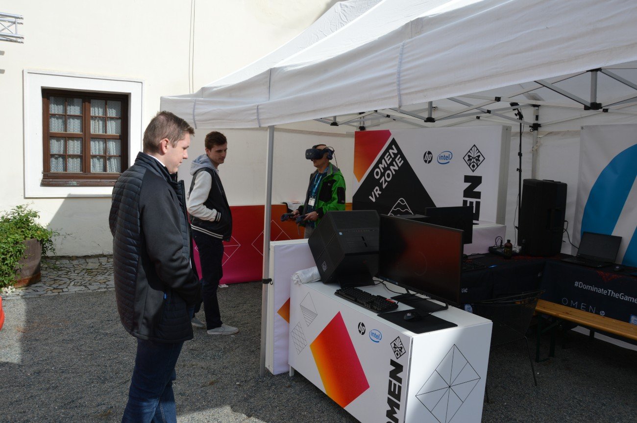 Ti, kteří se na setkání dostali hlavním vchodem, byli uvítáni nepřehlédnutelným stánkem od firmy Brother, který sídlil přímo u vstupu do zámku. Vedle něj pak vystavovatelé zabrali celou ulici, na které bylo po zbytek rána až do odpoledne velmi rušno. U stánků Asus a D-Link, na které bylo možné narazit jako první, se tak pomyslné dveře ani nezavřely. Firma Lenovo lákala jednak na své notebooky z řady Yoga a přístroje all-in-one, jednak na neotřelou možnost otestovat odolnost notebooků pomocí rotujícího válce, ve kterém se přístroj převaloval jako v pračce plněné zboku. Společnost Asus pak představila novinky, například v podobě herních notebooků řady ROG Zephyrus a krásně minimalistických, ale o to univerzálnějších přístrojů VivoBook 15. To u stánků firmy AOC to hýřilo barvami a hloubkou obrazu ve vysokých frekvencích na LCD obrazovkách určených hráčům s bleskurychlými reakcemi. Dell zaujal zase designem přímo futuristickým díky desktopovým řešením od značky Alienware.
