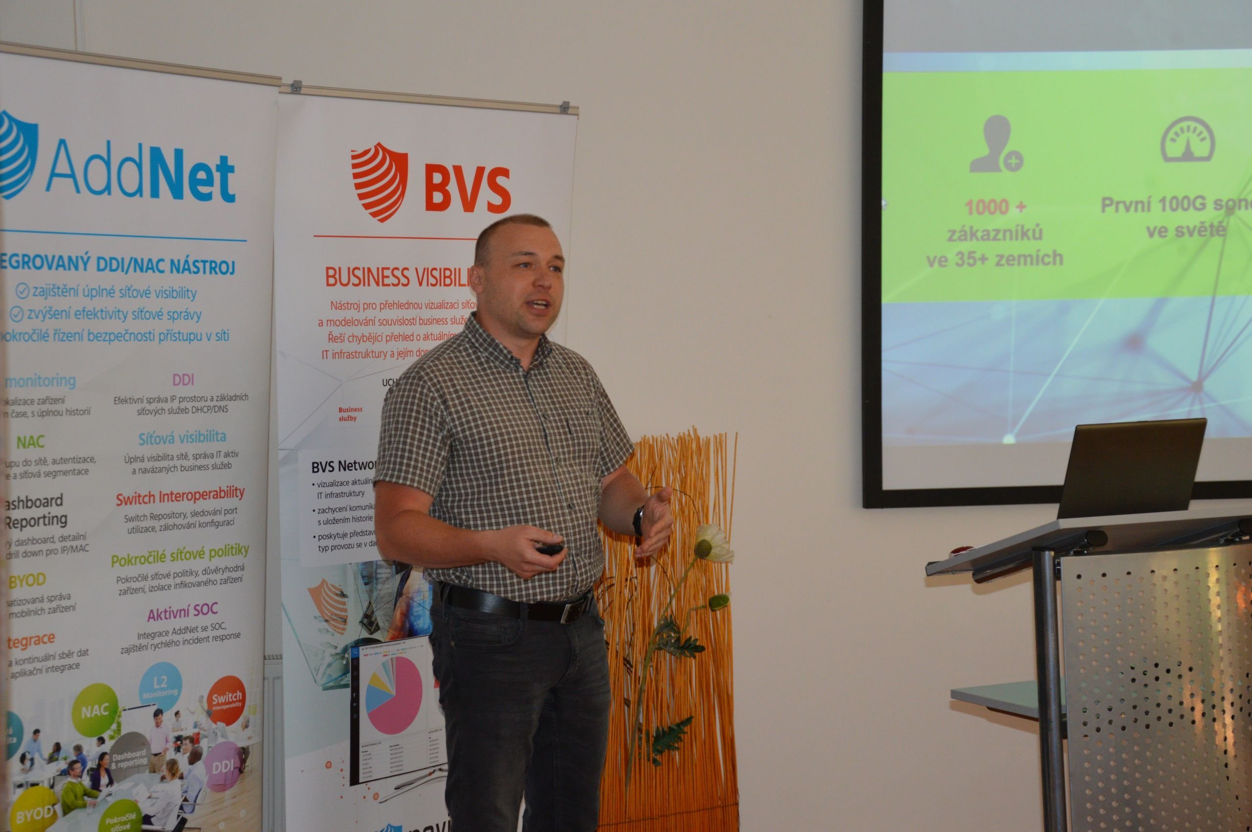 Druhý přednáškový blok byl věnován výkladu zaměřenému na platformu AddNet, což je integrovaný DDI/NAC nástroj pro síťovou vizibilitu, pokročilou správu IP adresního prostoru a řízení bezpečnosti přístupů v síti. Řešení staví na původní technologii společnosti Novicom SGP a využívá (rovněž vlastní) komunikační protokol SDP. AddNet je dostupný virtualizovaně i jako hardwarová appliance, výrazně se orientuje na L2 monitoring a je založený na OS Linux. Pomáhá mimo jiné reagovat i na trend BYOD a stále rostoucí množství zařízení připojených do firemních sítí a spolupracuje i se zařízeními ostatních výrobců. Zákazníci mohou volit mezi standardní dodávkou, nebo AddNet využívat jako službu. Pro náročné odběratele jsou k dispozici také rozšířené služby Novicomu. Výklad doplnila živá ukázka a případová studie.
